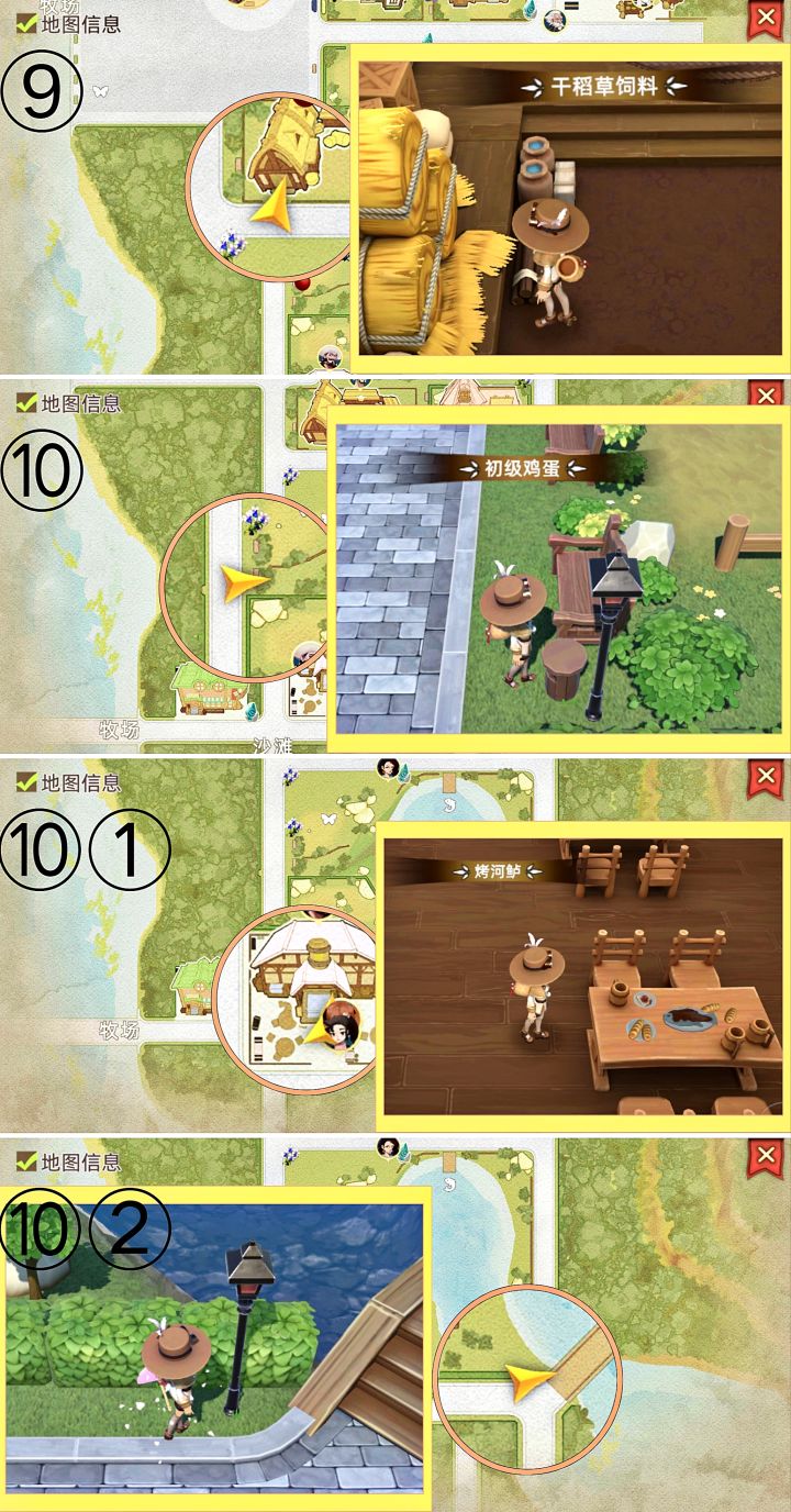 p1是小镇隐藏点位缩略图p2-4为点位详细位置p5是沙滩的四个点位#牧场气息 #萌新攻略 #游戏攻略