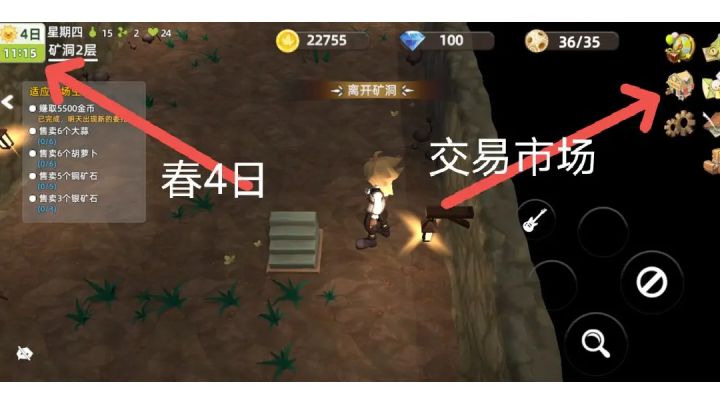 1.游戏时间是一直流动的,最晚凌晨3点强制睡觉,所以每天3点前必须把体力用到剩1点。左上角那个绿色小水滴的数字就是体力,右上角个人界面可以查看详情。2.体力清空会被强制修整,所以每天要剩1点。3.游戏时间的每天都可以在家里的电视玩游戏,送种子或矿,每游戏天3次。4.开局做什么? 建议:去家里箱子里,拿出来鱼竿(送的,直接去箱子拿)。然后去后山挖矿,只挖第一层。挖完或包满了就出来,一键