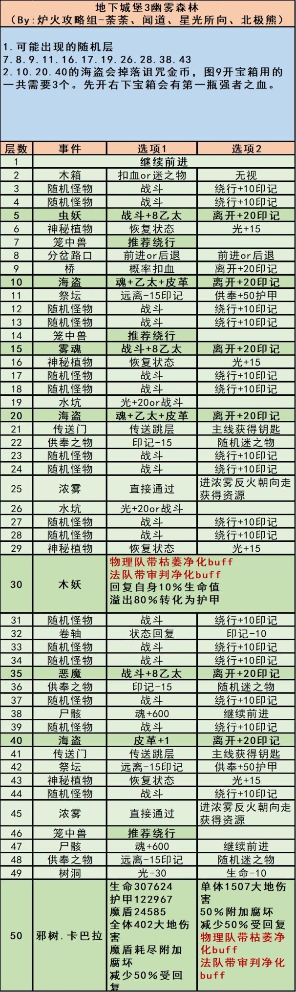 【地下城堡3】堡3秘境3幽雾森林
