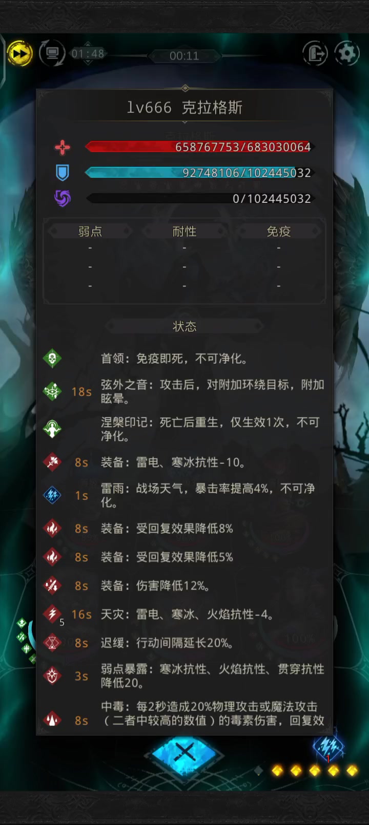 本身难度不高,这里简单说几点 1.下图为30层与50层boss技能 新机制:仇恨值系统即一些PVE游戏中的OT现象,主C受到boss集火导致团战暴毙,当然该机制新出现,对目前玩家要求并不高。 应对措施:坦克初始20仇恨+小丑帽子40仇恨,战吼主副C可以各吼4次不会OT,把握好战斗节奏即可,另外50层boss可以搭配麻痹戒指克制闪避。 2.携带沉重行囊通关获取全部奖励 3.商人:商人总计出现3次,除