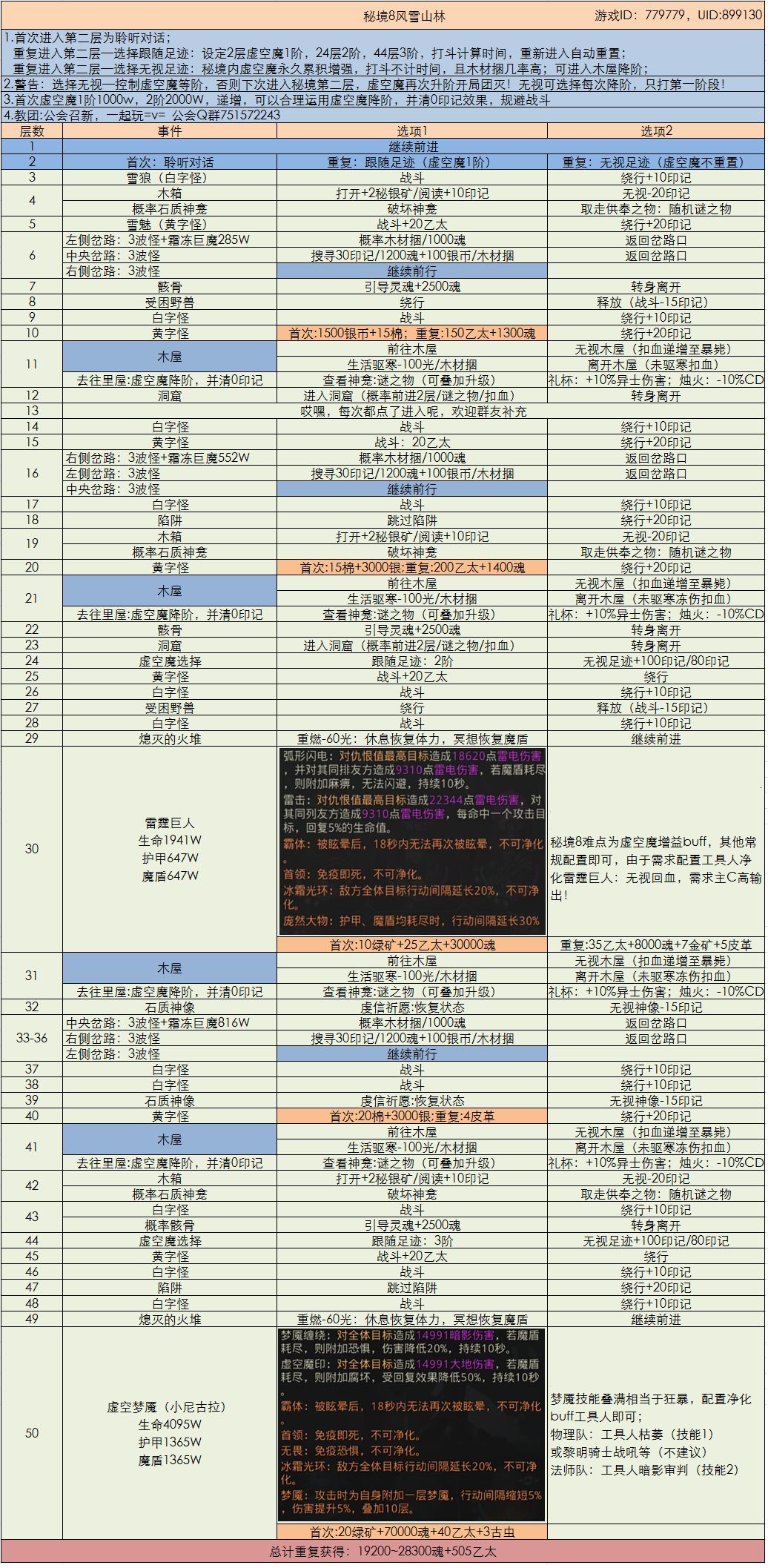 AID:779779 UID:899130 ;游戏昵称:终末之城~~ 公会群Q欢迎聊天小伙伴(751572243) 秘境8流程注意点:跟随足迹和无视足迹的选择—— 简单点说,跟随足迹:2层,24层,44层固定虚空魔等阶; 无视足迹:和之前闯关的秘境一样性质,虚空魔不停的增强,但是可以通过小木屋耗费阳光或者木材降阶(类似其他图祝你好梦); 然后就是虚空魔的技能:梦魇——每层叠加5%伤害和减少5%CD