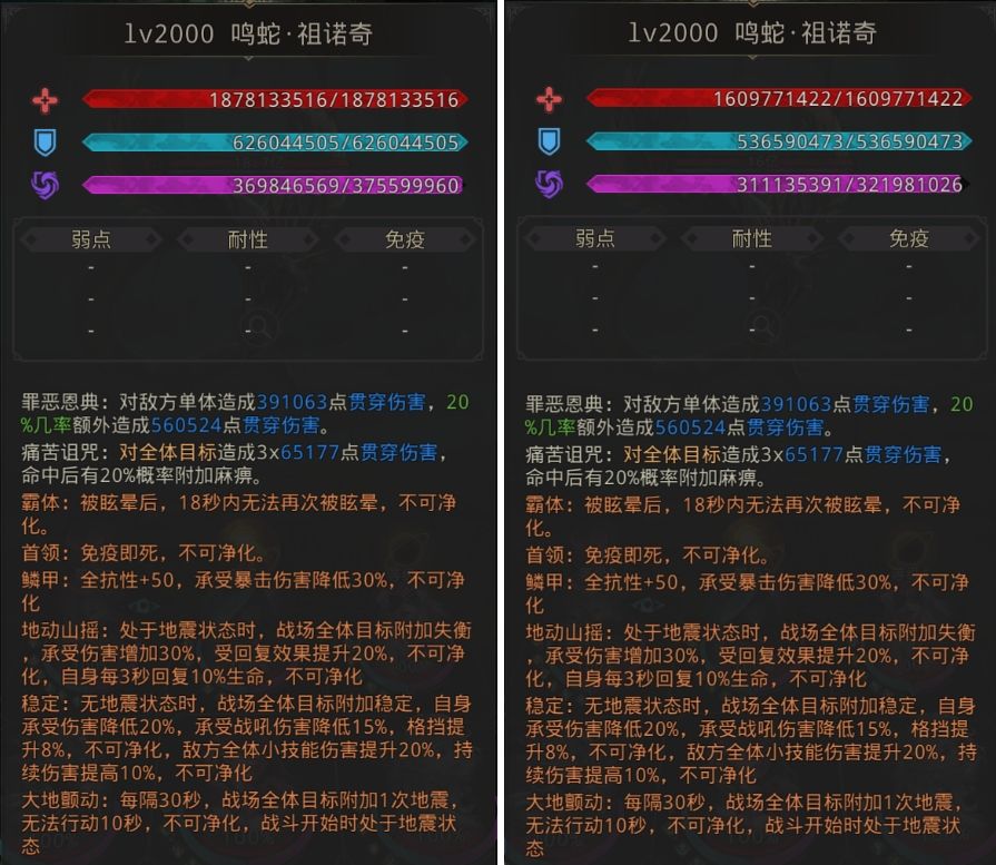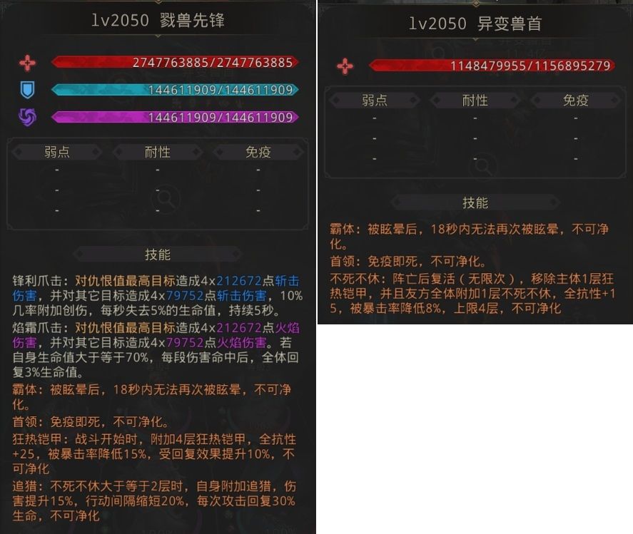 难点:需要100以上稳定毒,30层最高140回复,可以削减,50层160%毒,可以削减,毒尽量多带点,最好先把副体打死两次以上,不然你可能打不动,致盲带好,50层伤害还是有点高扛不住就吃抗性药,附体一亿以下秒杀主体,副体10%生命以上秒杀主体情况下主体会复活
