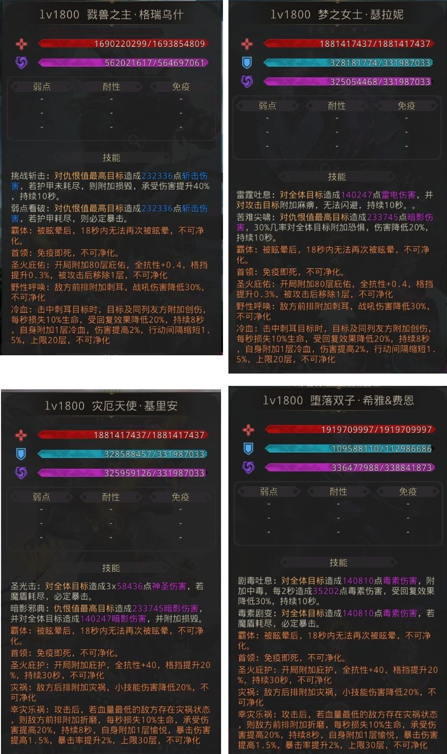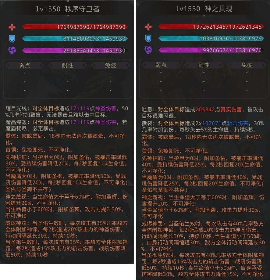见证神境对霍桑的审判结果:让霍桑远离神界事务,守护各个位面的秩序,一刻永不停歇!且在秩序未定之前,不入神境!执行在启迪之火中预见的神位,第一站:北加德... 30层BOSS:戮兽先锋 初次战胜: 重复获得: 简述:可击杀异变兽首4次后,带着4层60%击杀buff转戮兽先锋; 50层BOSS:恩吉尔 初次战胜: 重复获得: 简述:测试环境BUG中,可彻底击杀虚幻之梦后,转恩吉尔;阵容满毒+致盲,副体