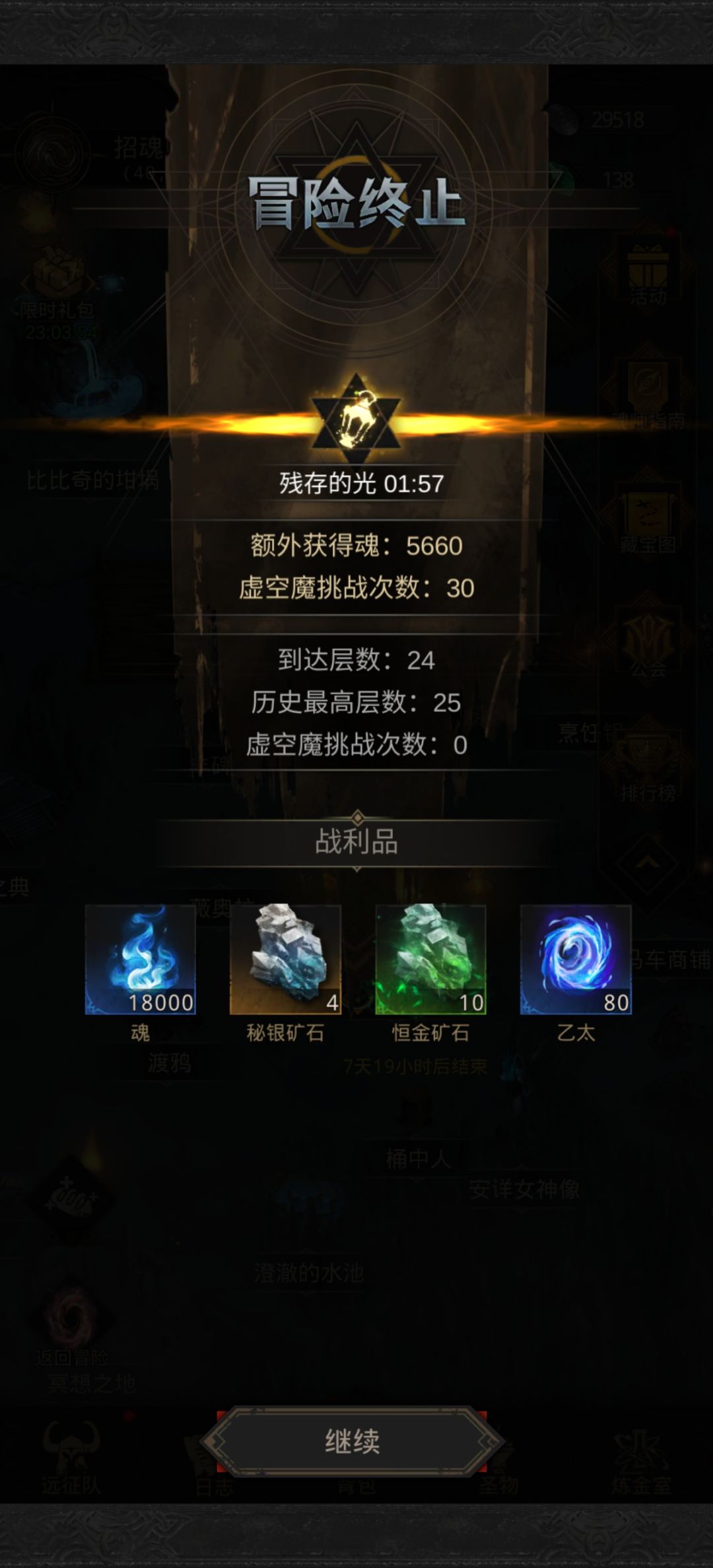 第17天 接下来几天主要目的是提升链接为后面渡海打基础,因为枯萎击杀怪物触发敌死增伤效果不稳定的情况,导致必须要更高的输出强度,所以最起码要链接到180之后才有希望。昨天有考虑继续用枯萎主c走下去,不转战吼了,走一条与众不同的路会不会更有意思? 今天日常抽卡,出了金色鹰灵和金色古之壁垒(龙男),因为晨星已经觉醒上去了,暂时没什么帮助。 刷一刷世界树副本,然后查了一下秘境7boss的情况,发现我目前