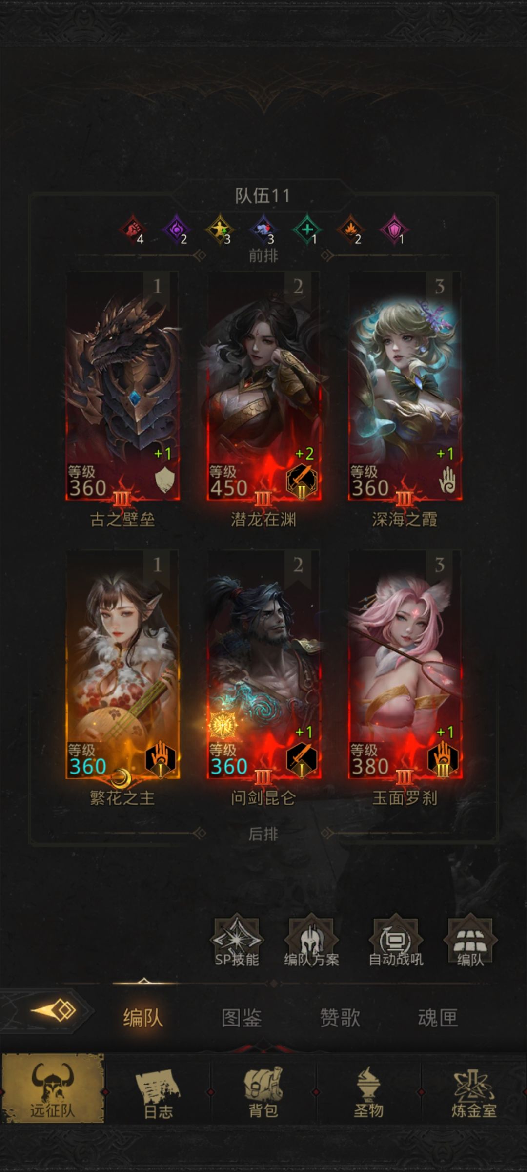 最强阵容推荐(无SP压力 1. **前排:坦克与输 - **角色1:晨光 - **站位**:1号位 - **定位**:主坦克,兼具治疗和减伤能力。 - **技能**:神圣护盾(减伤)、治疗之光(单体治疗)。 - **作用**:吸收伤害,保护队友,同时提供一定的治疗支持。 - **角色2:千面魅影 - **站位**:2号位 - **定位**:高爆发物理输出。 - **技能