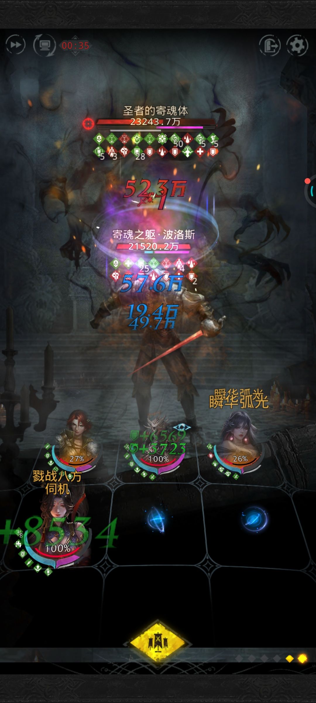 阵容是参考早上论坛看到的一位佬的,补充一些细节: 龙人只开1、3,符文牺牲(龙人的晕很关键,可以减慢流血叠加的速度,增加容错); 燕子带狂热; 暗语开60回魔盾,另两个技能默认(因为不掉血的时候繁花不奶人,但是没有魔盾纯靠血量顶不住); 繁花99奶,开攻击; 阿莎拿带减伤的堕日,魔魂全带承伤,符文伺机; 没有sp狐狸,只能用普通狐狸,领主戒,技能默认。 食物3毒抗,开局狐狸,满豆暗语,重复此操作直