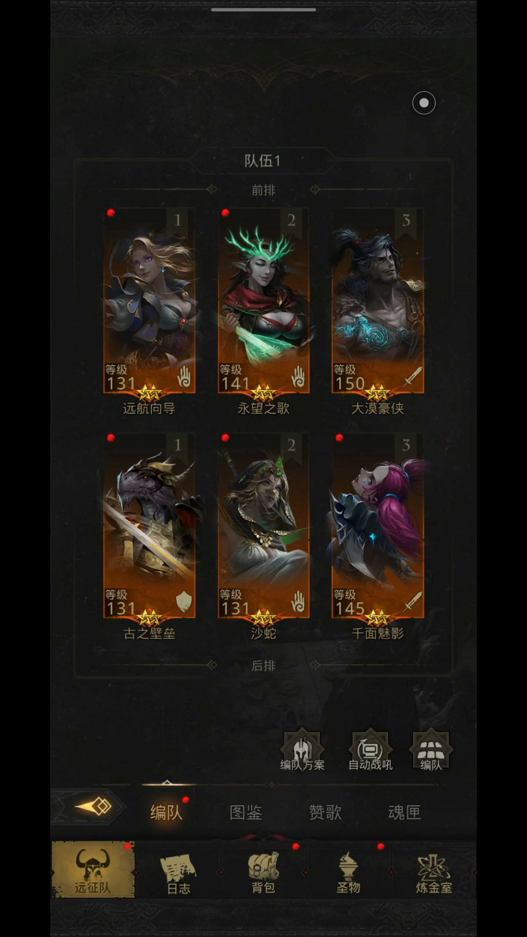 队伍9为主线,潜龙可视情况换虐焰。 (没有6阶技能把潜龙换成虐焰或者别的辅助) 暗鸦偶尔换守林人(我忘了还有这角色) 上火燕子3火1雷 不上2火2土/雷 公会boss和魂墓阵容一致。 后续可能会有更好的搭配 新区可以参考,老区暂时不建议玩火队。 (建议新区已经做好夜莺和娜娜或者做了一半了继续玩不要转队伍)
