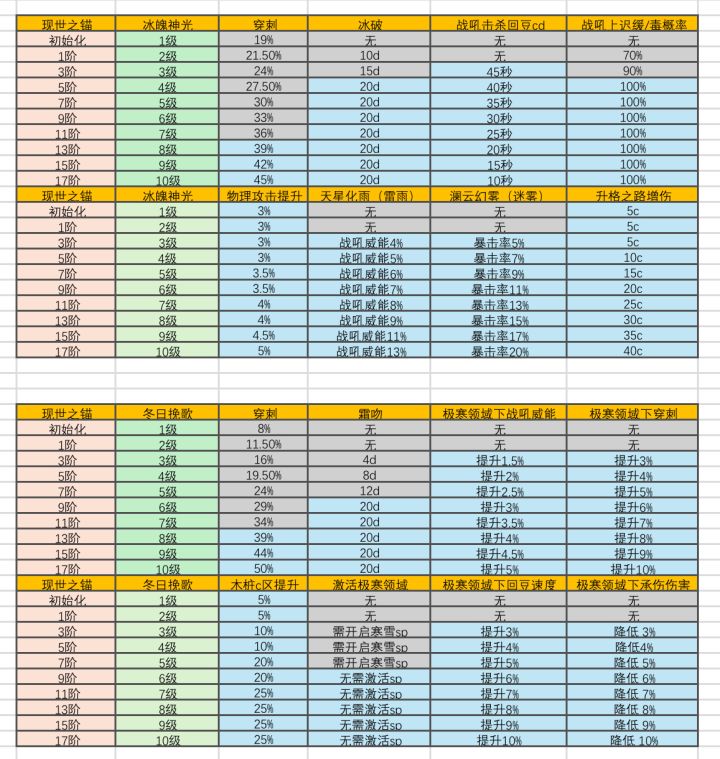 1.首先 喜,傀儡亡了 (傀儡上投入资源的全亏了)悲,sp阶数要求较高,成型成本低于火漠 2.sp阶分配 寒雪9 极光9 小青9 晨光5 如果短期能轻松达成就这样分配 3.寒雪sp阶带来一个类似合体技 强度就不说了 加战吼回复速度!夯爆了! 显而易见的作用 60s桩 低兵鉴10级左右也可以多一豆 领主桩最后一豆可以稳定打出不用凹 4.阵容预测 暗鸦 极光 水母 晨光 寒