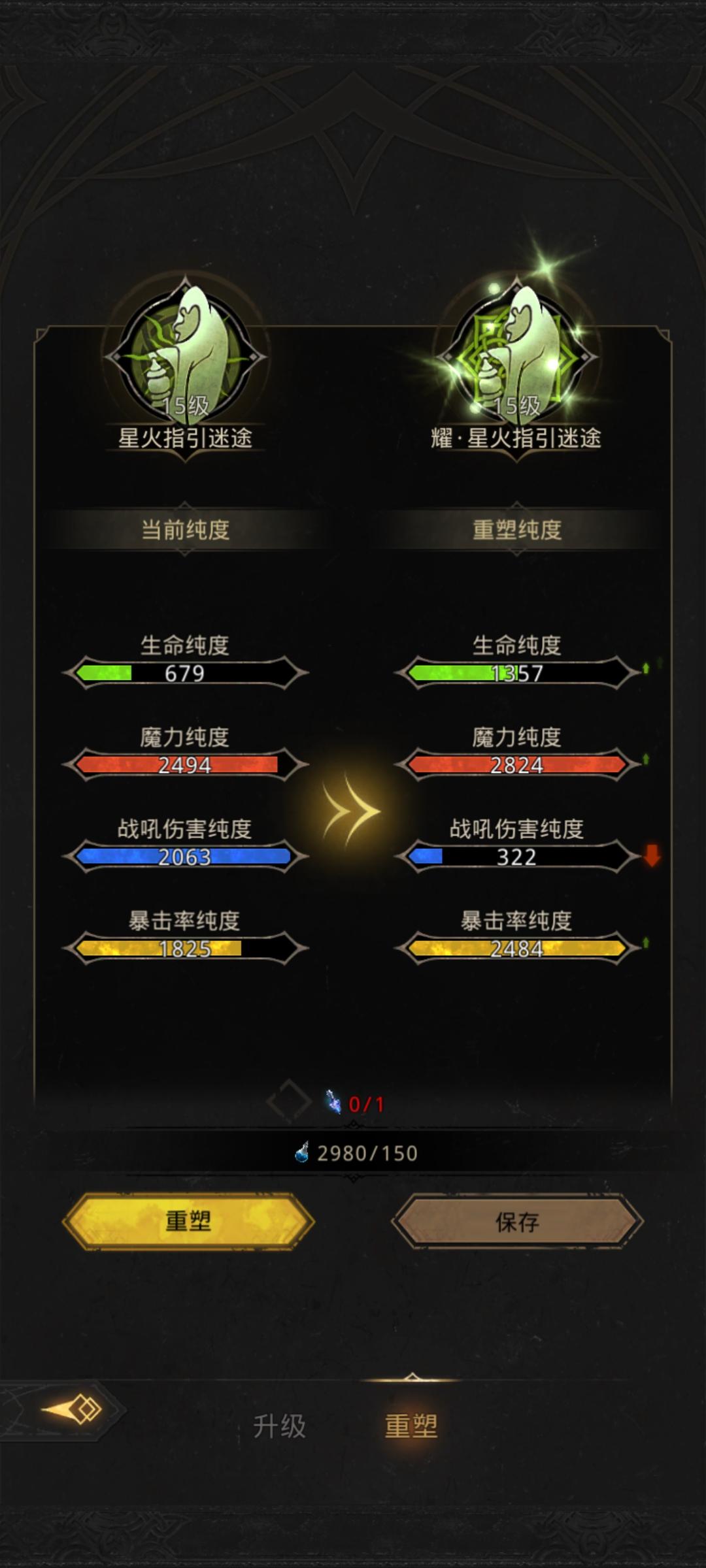 第一,先升级开孔在灌注,因为灌注是随机顶替,升级越高开孔越多,灌注覆盖垃圾的可能性越高,不然有可能就是覆盖你洗好的词条第二,看自己是玩刮痧鸟=力量小技能,战吼有阿莎=魔力战吼,大漠=力量战吼,先看自己主c是力量还是魔力,输出技能是小技能还是战吼,在选择合适的星痕第三,重塑有概率会出现耀前缀,无论洗的属性好坏,先保存,耀前缀是可以保存的,出现耀之后保存以后洗出来的属性基础是>没有耀前缀的第四,