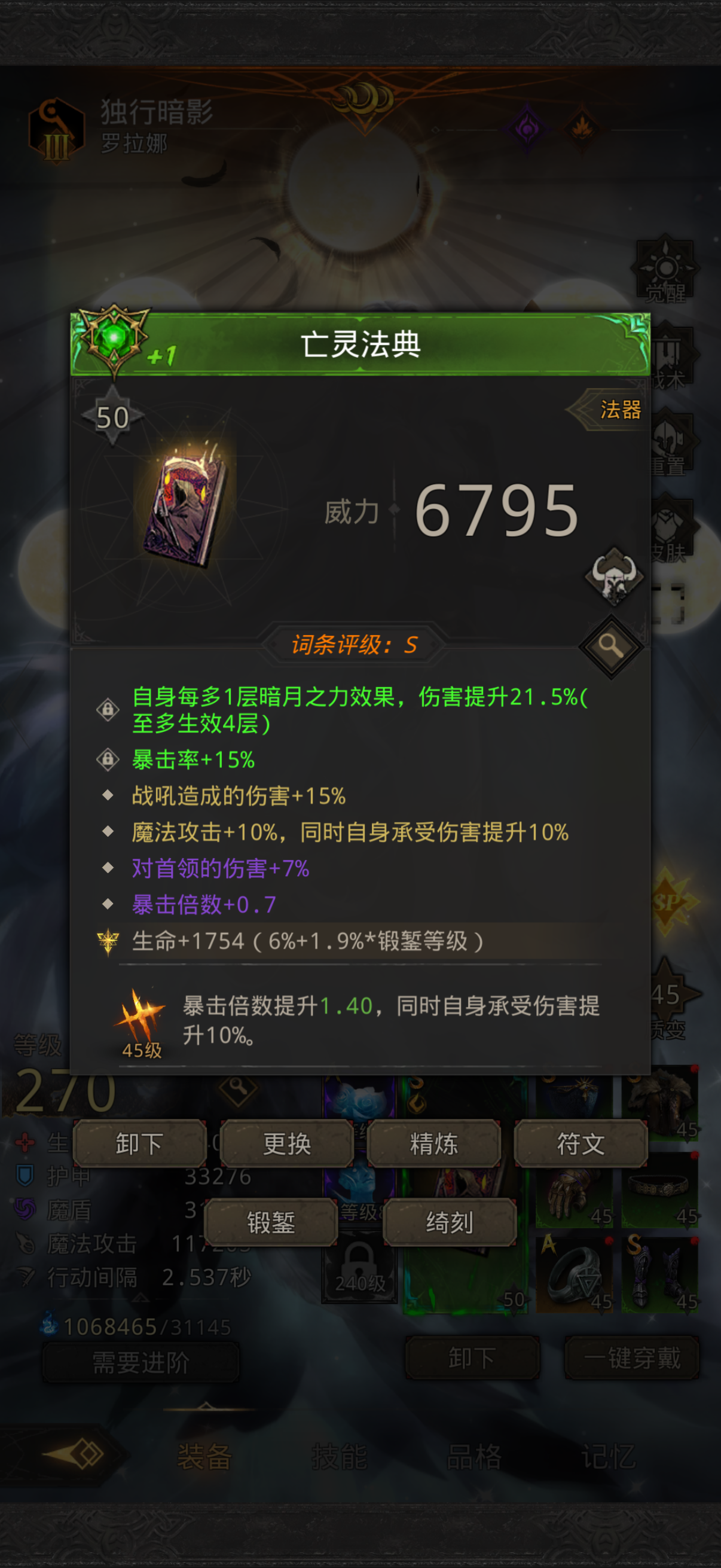 这个够可以了吧,没必要再硬刷暴击1了吧,感觉其他也要好太难了