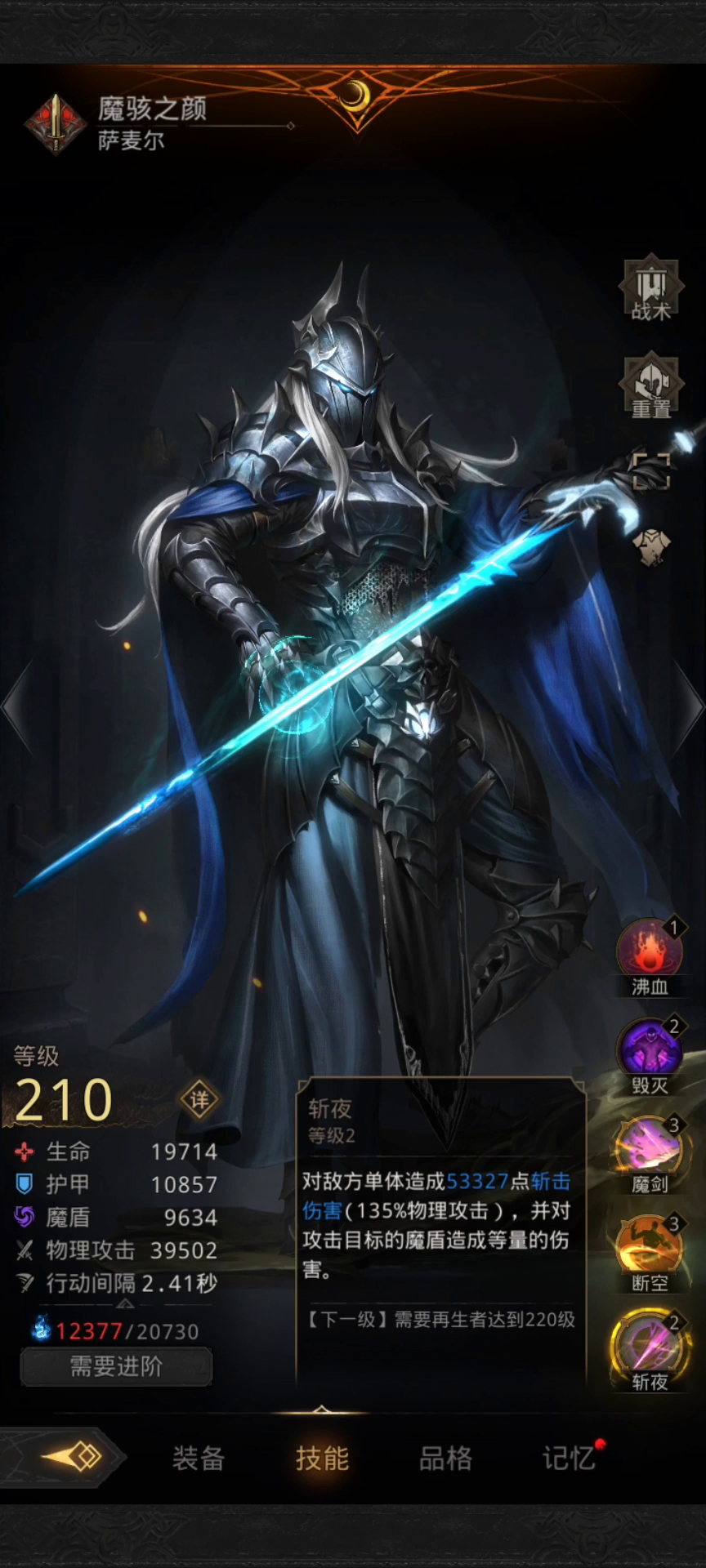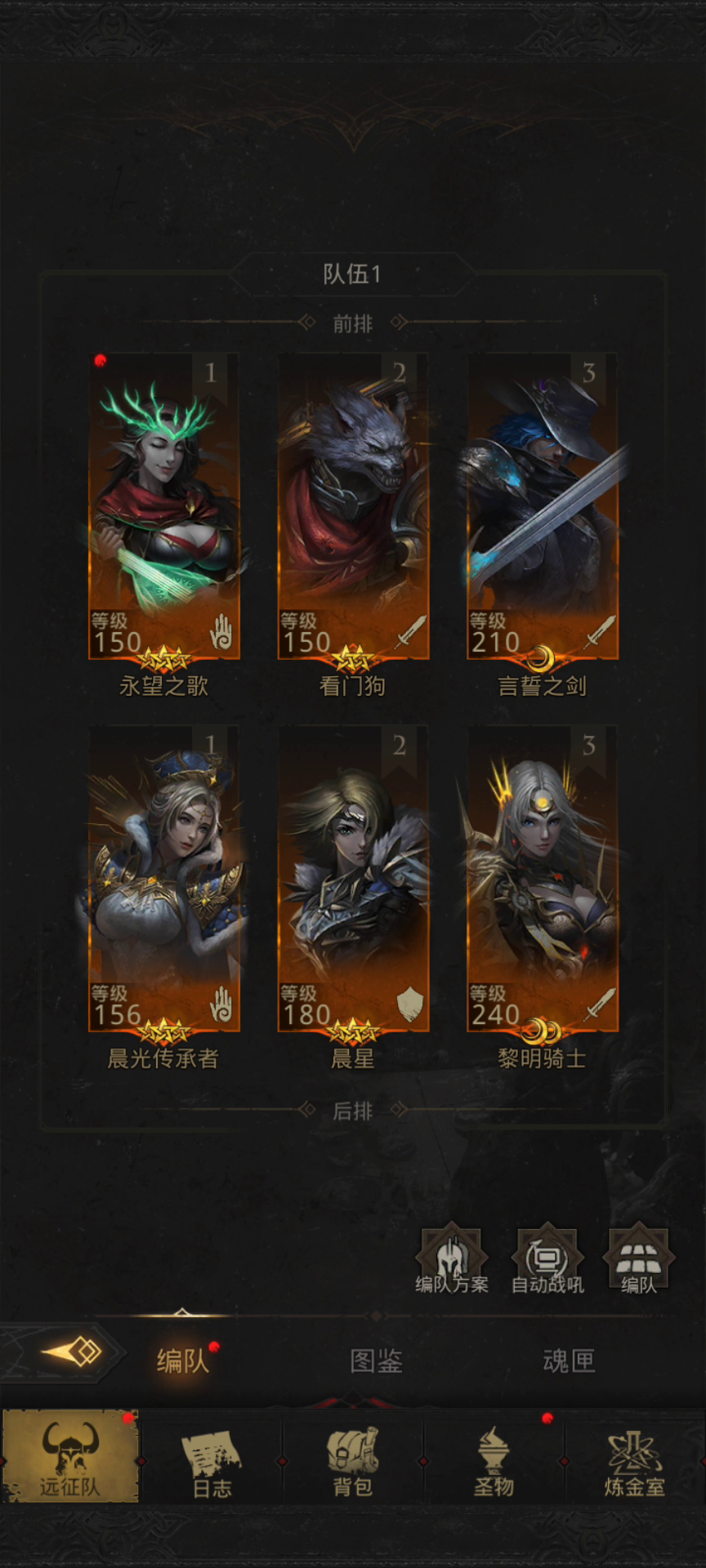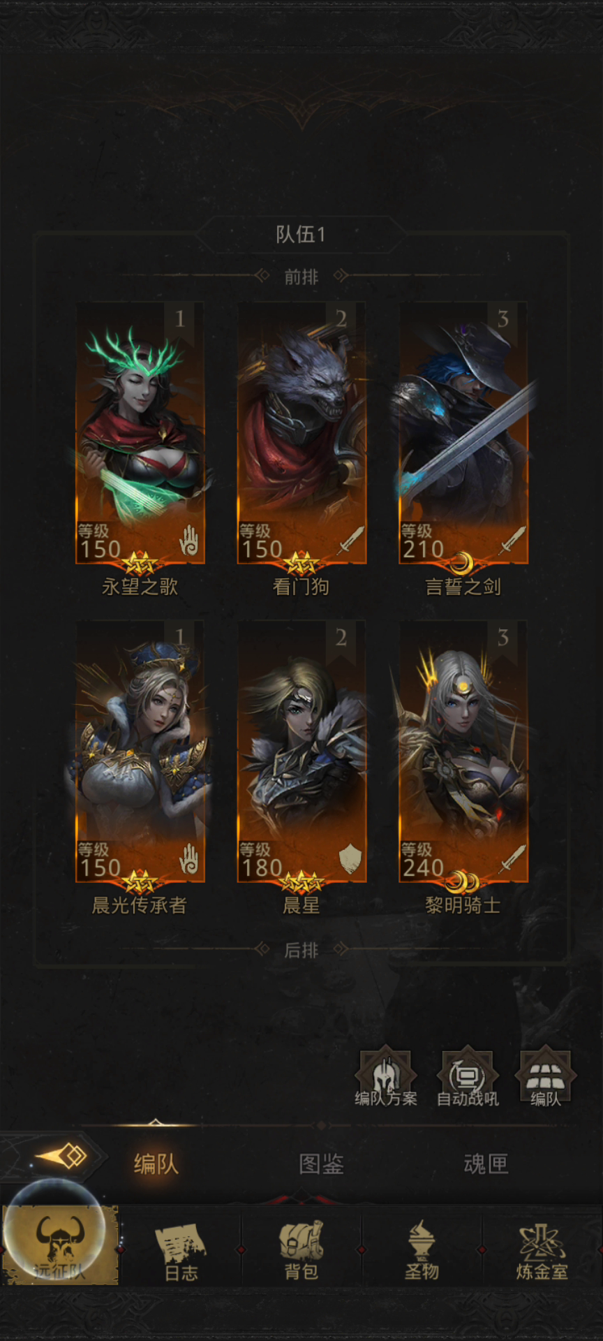 今天把言誓之剑传承给了魔骇之颜,貌似攻击提高了不少。首先魔骇的战吼输出比较稳定,言誓连斩的不确定性有点高。魔骇战吼直接先100%上损毁,能给黎明较大输出空间,而且魔骇的断空有20%几率上眩晕,可以节省下一到两个战吼豆专门输出了,而不必分给晨星来做一下控制。魔骇的斩夜可以快速打掉魔顿,带上暗语还是很不错的。灵魂之墓带言誓的时候这个等级还是打不过去的,换了魔骇直接一把过。这游戏其实是需要灵活更换英雄的,只是材料物品道具太难弄了!
