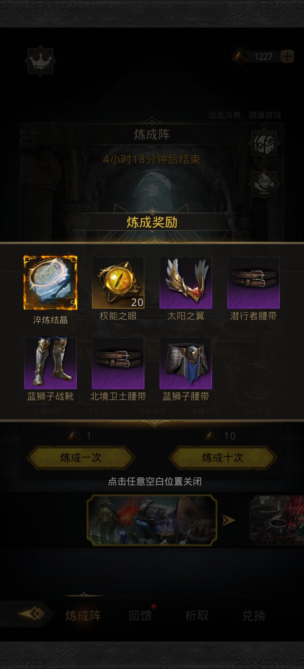 拿一代材料合阿莎二代武器顺便偷鸡第三,又吃上了,120抽出的刚好手里17片淬炼结晶,加上这个重复的5片凑齐22片拿下第五个马车氪金圣物淬炼结晶刚好清零。250抽278眼睛,补了3抽凑齐583眼睛,拿完武器还能多拿个防具贤者石不赖。