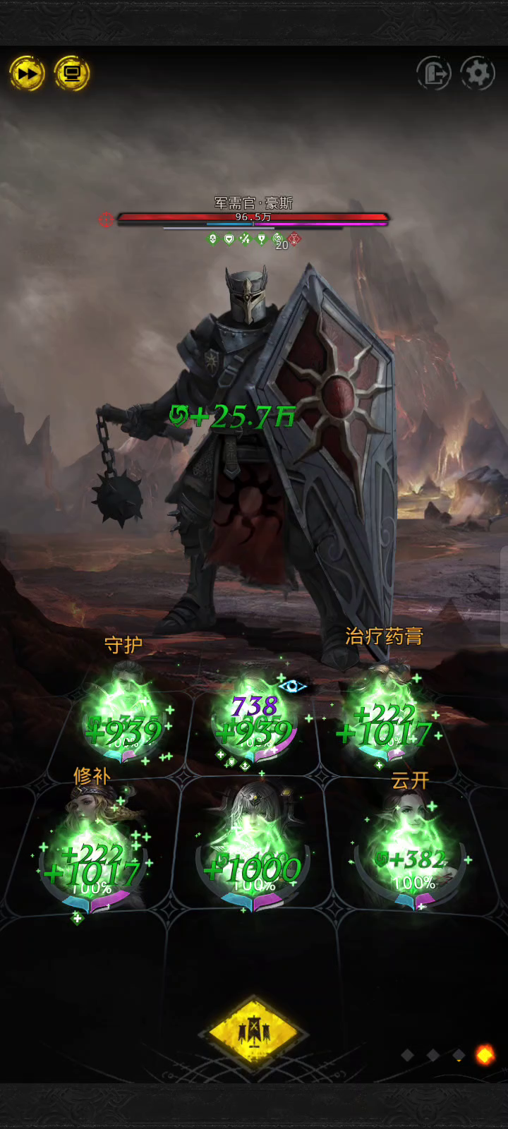 bgm:Thymon 首先是食物,一定要吃胡萝卜汁来加神圣抗性。 boss特性,魔法盾回复加超高的全体法术攻击和群体减速,直接劝退法术伤害,c位必须物理输出且得上3-4个奶(排除炼度碾压) 阵容上选择,铸魔人(群体加抗),谦信之人(群体奶溢出魔盾),晨光,永望(双主奶),c位(源书使群攻为斩击伤害,可以当c),暗语(单奶魔盾) 手动施法,关闭加速更稳,boss攻击是,a,a,群体减速,a,a,两次平a穿插技能,正好卡住一个能量条的回复时间,前面先攒能量条,在血量50%boss伤害升级后,卡住放技能的时机放晨光永望的战吼(我放的不是很好),就可以给输出创造足够的时间。