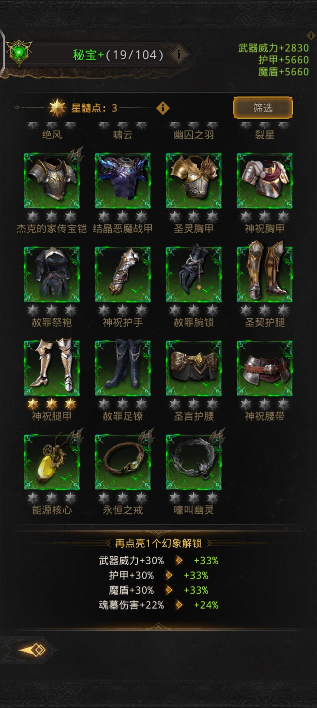 现在阵容和圣物是这样的,是拉魔攻圣物还是等等过年看看有没有活动,弄出武器精炼的圣物再拉呀。只氪大小月卡。感觉暂时提升不了呢。