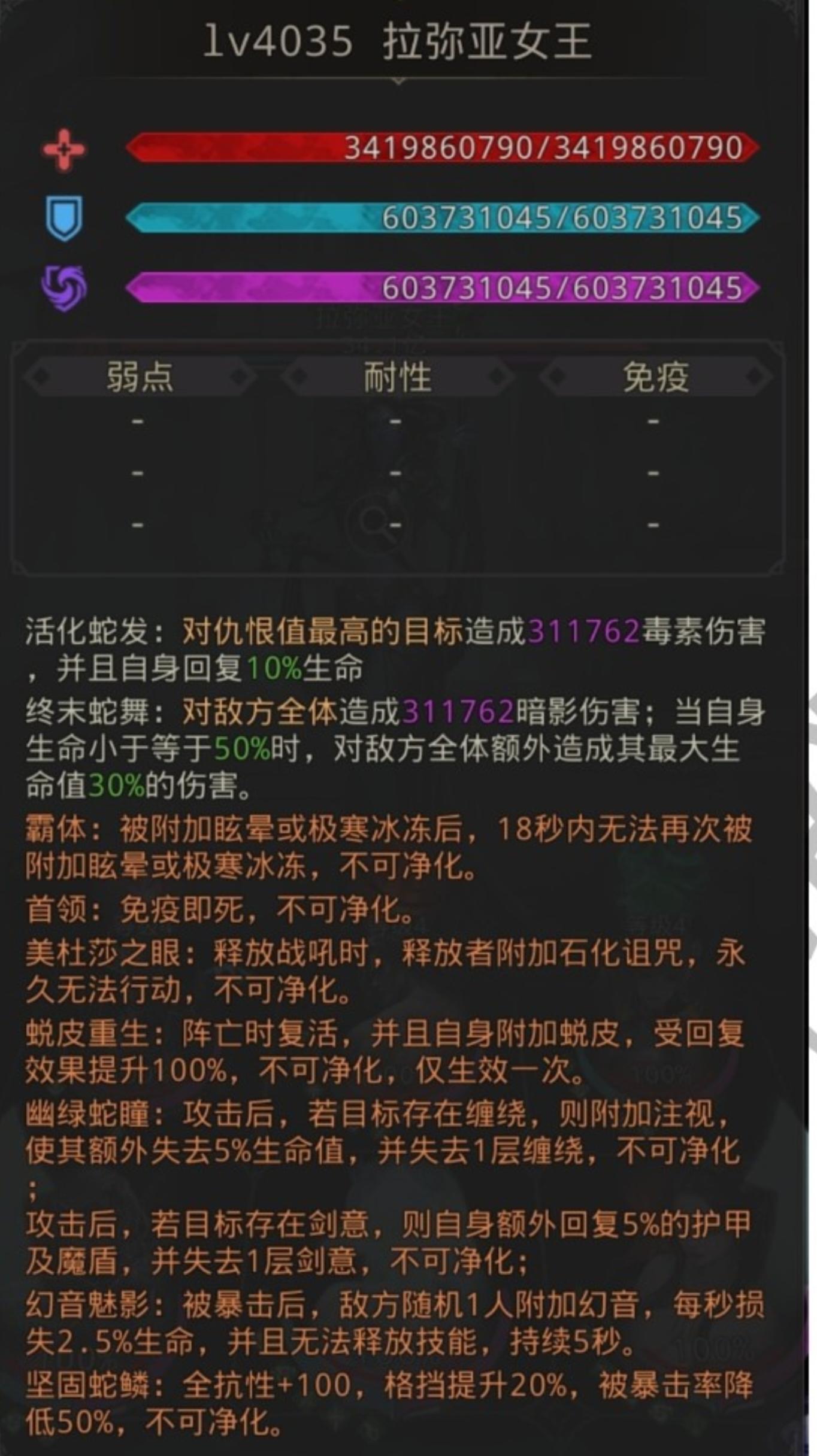 新图做的又是一坨,拉弥亚女王一共三波,第一波的怪又肉闪避也高,第二波没闪避但是很肉,第三波女王伤害很低就是个肉桩,前面两波打完时间不是很够用了,最主要的还惦记你那时间限制呢?