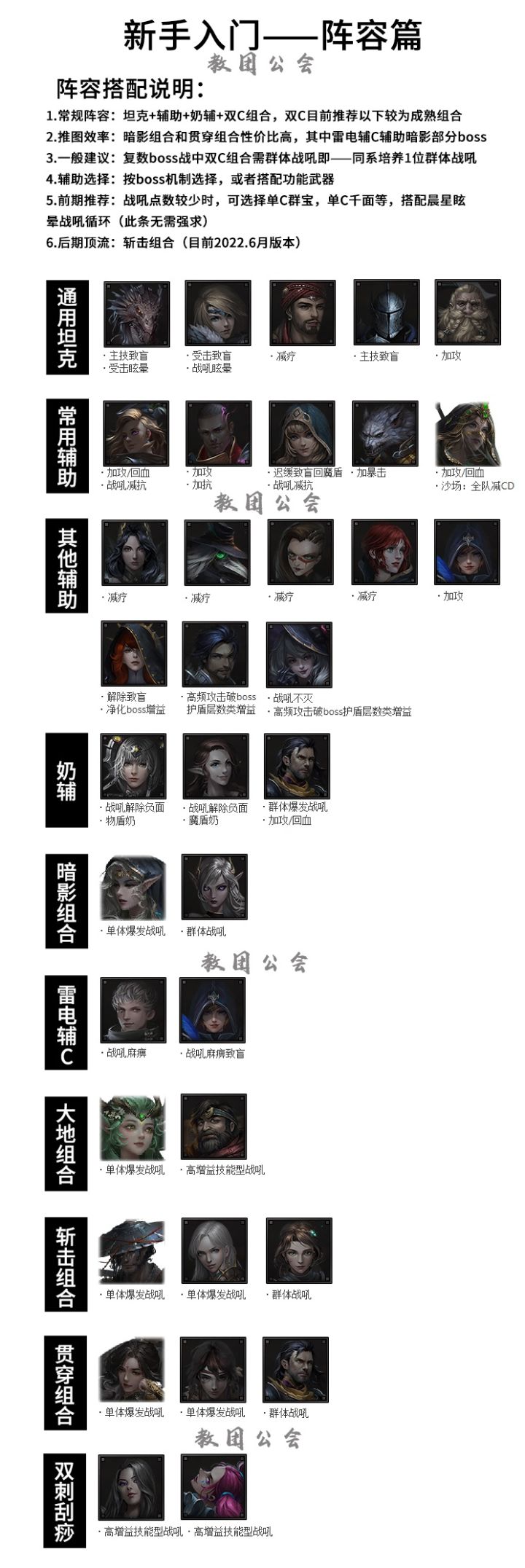 1.第4次沙子终于存够16蓝卷换了神术之惑,加上第三次活动的260抽换的豆剑,终于可以转吼队,感觉这个游戏的概率越来越低,还是杀熟了,以前几个号都是3次存够16蓝卷,只有这个号开了大月卡反而卡,哎。2.把千面传承给娜娜,前期吼队打法还是主要的接控打法,等队伍链接210-240左右工具人能站得住才换配置。前期资源短缺不用拉升副C,副C物吼用远航代替,法吼用暗语代替3.转了吼队就可以参考排行榜的配置了,大概成形的配置和装备都有。4.本3.0攻略中后期以法队为准,斩击队看1.0,贯穿看2.05.转吼队的主流方案温馨提示:这里是重要转接点,转了不能回头,请认真考虑。方案一,如果出了风轻匕首,再生者有危月燕,可以转贯穿吼,换深海巨兽之刃(豆剑)和暴武哈斯塔的战矛。方案二,如果出了风轻匕首,喜欢刮痧,不怕累不怕卡可以换亡命猎手继续刮。(普通玩家不建议后期玩刮痧,难度倍增。)方案三,没有出风轻匕首,再生者有孤塔的监视者娜娜,可以换深海巨兽之刃(豆剑)和暴武神木之惑方案四,没有出风轻匕首,黎明下水道斩击队,可以换深海巨兽之刃(豆剑)和暴武龙骸巨剑(为我第一个号默哀2秒钟)方案五,没有出风轻匕首,氪佬斩击队,新版出了2个新再生者豪侠和沙蛇(已不是当年的黎明下水道斩击队),斩击队强度应该是现时天花板,但需要多件2阶绿武启动,不建议小月卡党摸,我大号玩了4个月才把武器存够,10把绿武才成形,2阶算2把。方案六,没有出风轻匕首,氪佬打击队,新版出了撼地先锋锤妹,现在不清楚套路玩法,有兴趣的可以尝试。如果没有想好,可以先换豆剑,暴武先不换,等兑换出自己喜欢的再生者再换暴武,代价只是100魂。多看看排行榜配置再决定下面的截图配置不是固定的,可以按实际情况更改,主要现在赞歌系统需要再生者羁绊,还有更新的绿武,尽量多看排行榜的变更前期法队武器:深海巨兽之刃(豆剑)-神术之惑-猎神之训(新豆弓)。防具巨神头手-巨神腰衣-巨神腿-恶魔套