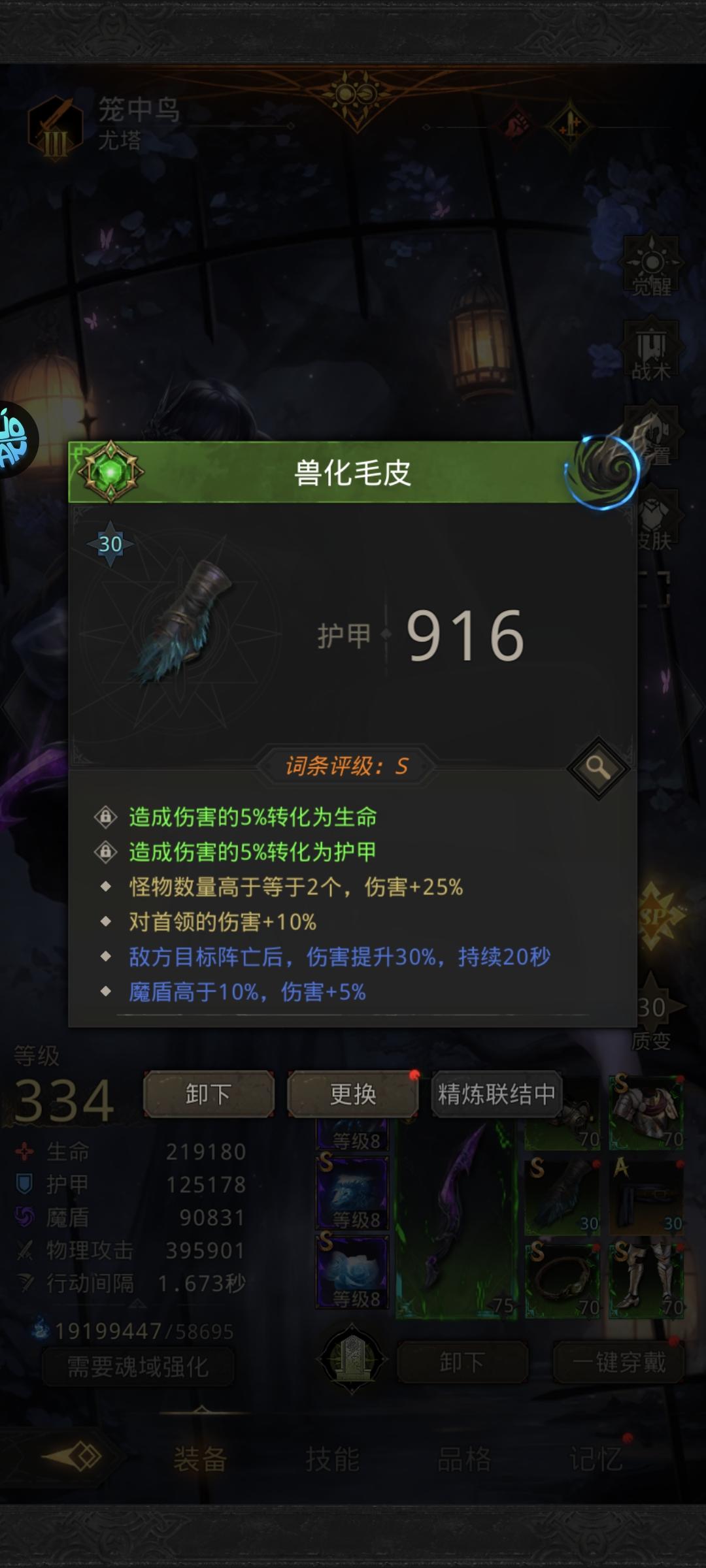 重点凹秘之物debuff少一点,凹减暴击/减攻击/减回复debuff,减回复看个人底子吧守林人开捆绑,带龙女,龙人开烈斩,核心是捆绑加迟缓加眩晕拖住对面进攻节奏,在捆绑和眩晕的情况下,多观察鸟是否有致盲,如果有,在捆绑眩晕一瞬间,吼繁花解致盲多打输出因为有减回复debuff,鸟扛不住伤害,所以这边使用神装吸血手,然后下神祝腰带上旅行者保证满速燕子带伺机,破层数血量不健康情况,看对面行动条决