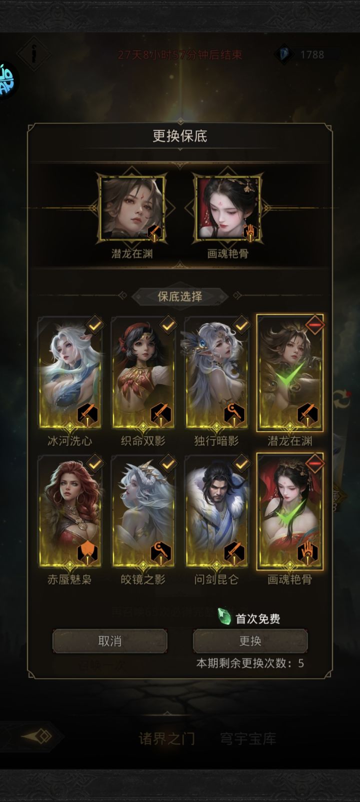30天自选笼中鸟,过年送繁花,阵容直接毕业,没燕子,武器二代匕首做完做曙色明光加古龙,然后防具做出结晶恶魔即可解决 ,燕子位置用任意强力辅助过度即可 ,血棘/铸魔人/龙女/沙蛇麻痹等等,通过秘境14获取生灵之灾(恐惧矛)后仍未有潜龙在渊(燕子),用桶中人持生灵之灾过度按照Wiki详细配装诸界之门如图所示