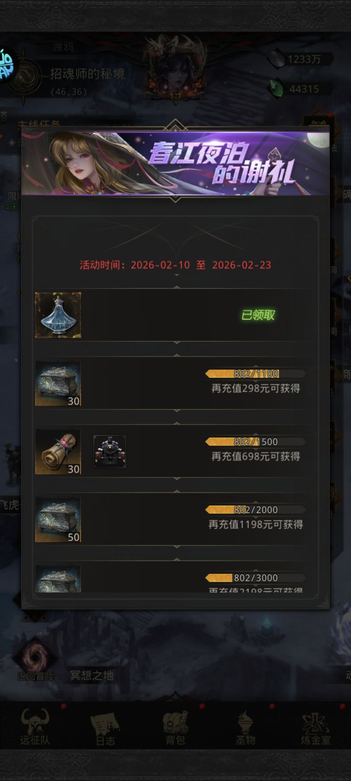 十月份开号比我晚一个月,面板接近同步通关轻车熟路了,我自己打39.5,从115打到142不下10次,最后142w燕子,又尝试两天后三次拿下后续41/42分别栽了一次,最终定格146w通关,39.5~43.5三天拿下,通关第二天开始这个号的39.5打这个号好的多,39.5三把过,后续秘境有经验,火土阵容相通,40~43.5全部一把过,定格150w阿莎,9级兵鉴