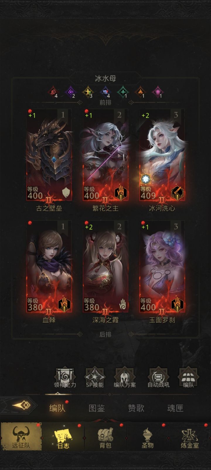 目前玩的暗队,装备基本都有,推图目前到祖龙就感觉有点吃力,要不要玩冰队,今天250练成做了二代武器,顺便抽了三个圣物上一次250就没出货,sp角色活动烟花还可以换一个。秘境也比较难打,270连接过的11,还会死人,12一直没打