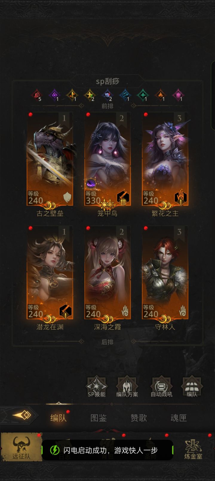 前期唯一解,千晨互吼队,千面晨星互吼,千面带暴击1匕首,晨星冰剑,防具洗80异常,奶妈永望默认,辅助守林人只开捆绑,祝魔人默认战术,最后一个位置随意,开了符文后第一时间弄出50级狂热,千面就完全体了,可以一路到渡海,转战吼