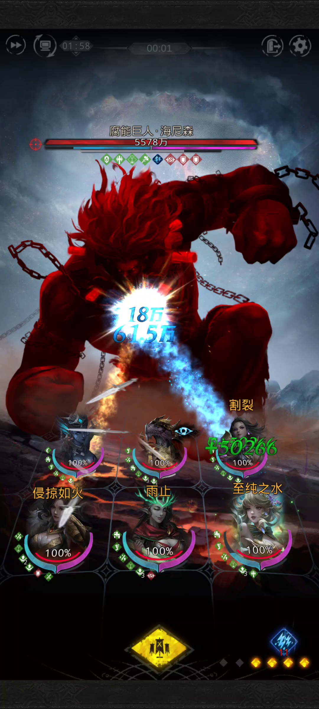这怪属性冰抗耐性火抗耐性,对冰队和火队来说确实难打,有武器的可以考虑转个剑华刮死他。 先说高面板的常规打法,食物3黑面包,彻底摒弃暴击符文带别的加伤符文,不暴击就不会被净化,慢慢打死就行。 但是冰火耐性,本来就刮痧了,那么搞输出根本就不够。 所以我这里使用常规阵容打法硬打,还是勉强能打的。 等他那个土元素法球锁暴击倍数2的效果一消失就输出。 然后伺机副C,只要伺机一到2层就直接吼反正天气杂,干脆不