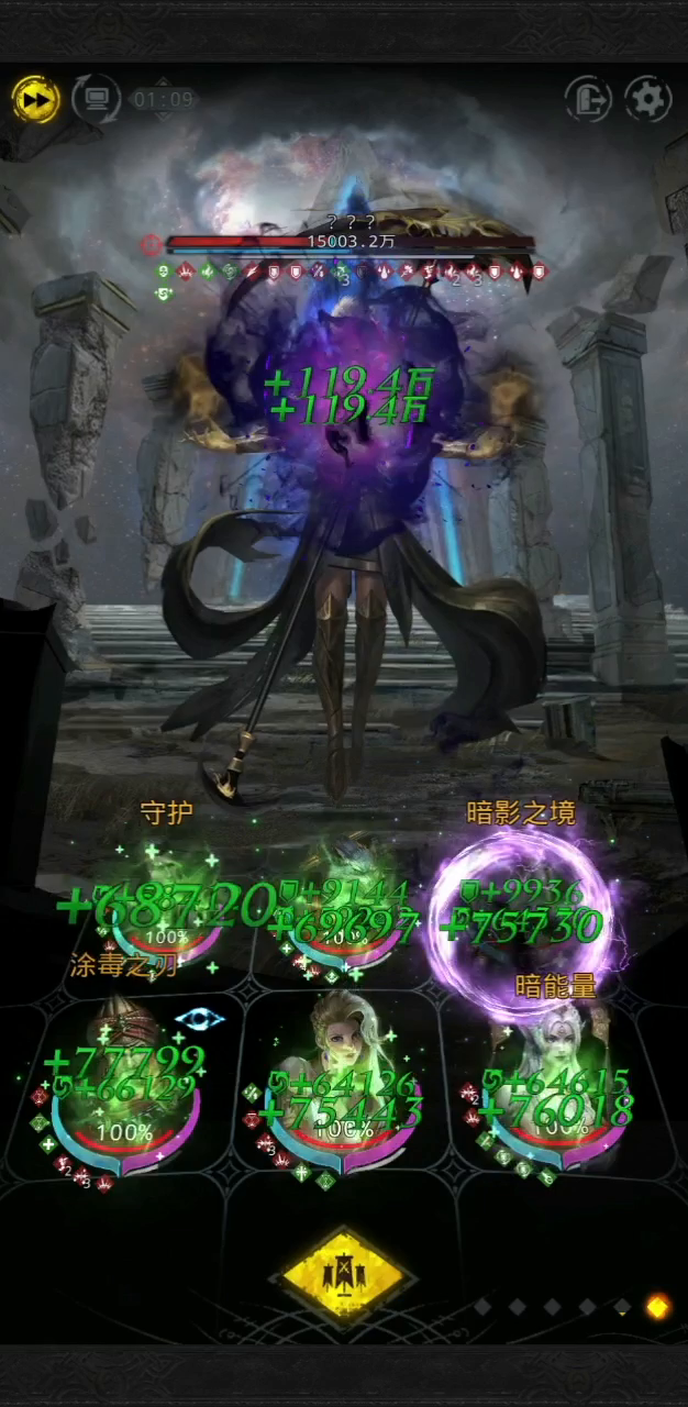 这个怪一定得净化快,加上接近满毒才能打。 或者你要是能稳定满毒,可以开局趁第三次出手虚影出来之前就打爆发,快速压血,后面不靠暴击也打死就行。 法队上暗影审判净化是最好的,但是我就不专门转阵容了,因为现在这也能打。 我看水母净化的太辛苦了,我实在是赌的难受,就干脆再上了个刺剑来净化,果然效率就高多了。 也没什么打法,虚影一被净化掉就输出,但巨神的效果得一直续着,就算没净化掉也得吼一下续巨神的效果。#攻略