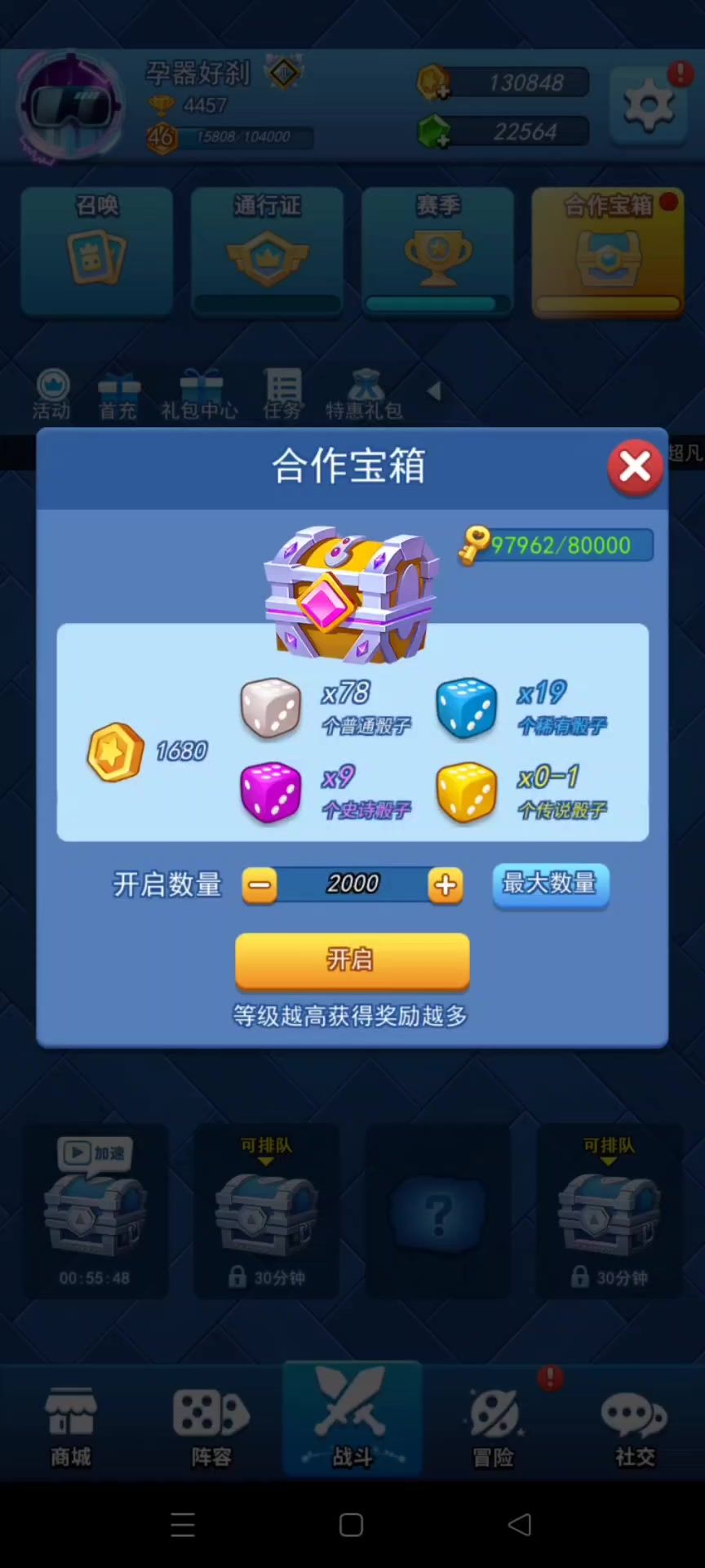 两个号2000个合作宝箱能开出什么呢?