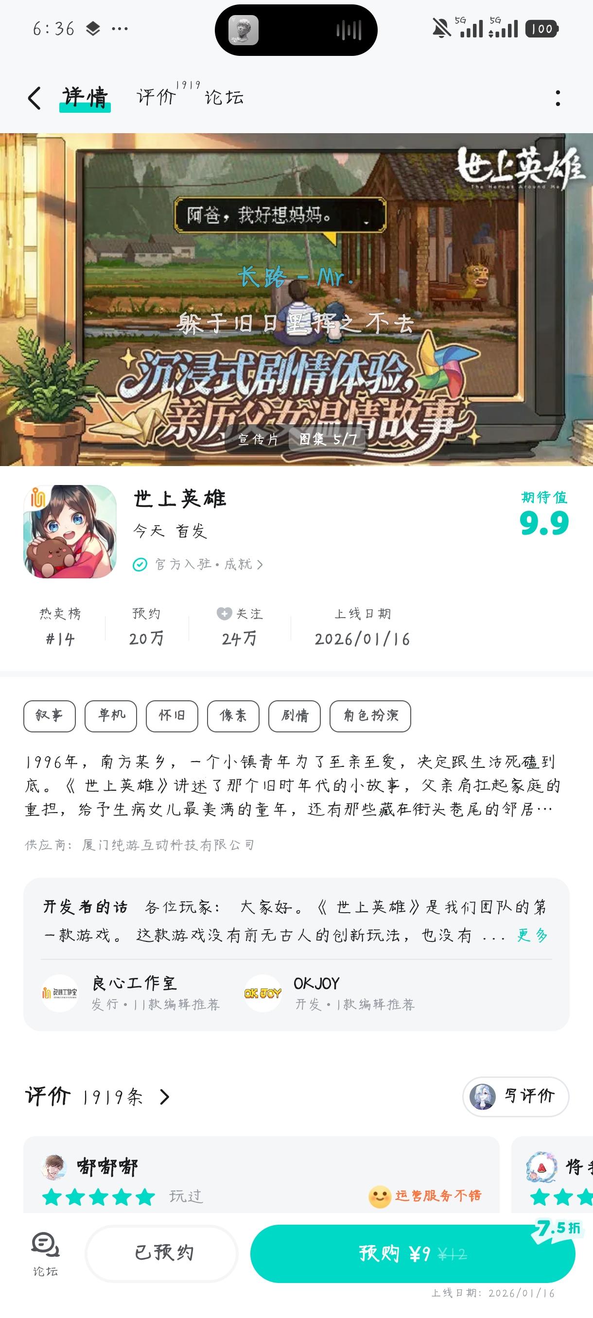 【已开奖】《世上英雄》定档1月16日上线!TapTap预购已开启~