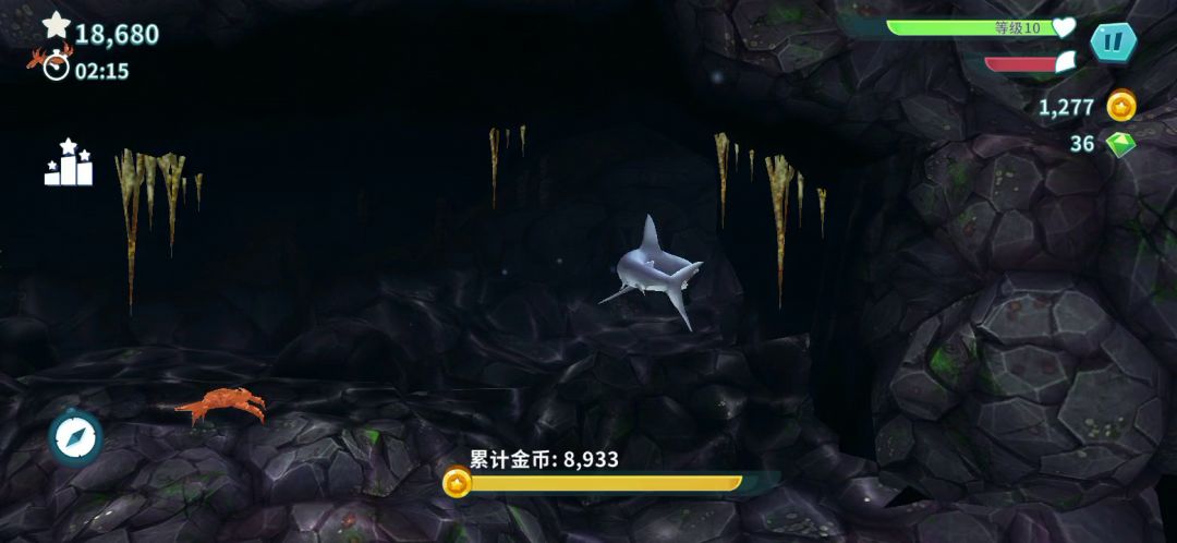 最开始的鲨鱼,只能浮在海面上吃人活着追逐一些小鱼吃,碰到一些海底的水母什么的,不仅吃不了,还被反咬了,稍不注意血值就消失死翘翘了。 所以就是要可着劲的攒金币,攒金币之后再升级鲨鱼的咬合力、加速度,最开始升级一次咬合力是1200金币,其他的依次类推,但是每玩一次最多金币的时候就200来个,不是我能力不行,其实咋说呢等级不够,各方面不行,随时提防着危险,所以也很难攒到多少金币。 不氪金的情况下如何快速