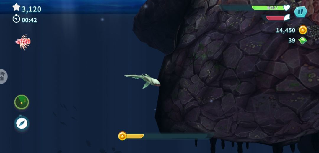 饥饿鲨进化,我觉得越往后升级越慢,即便拥有钻石和金币外,还需要不断捕食。现在游戏里没有标注捕捉食物的具体经验,但是那些越难捕捉、危险型越高的猎物,必然增长经验值越快。 但是水母、水雷、毒气桶这些对于低级鲨鱼来说,是妥妥的要命障碍。在水里碰到渔枪潜水员或者同级猎物,不要逃,可以从头部以下或者腹部进行攻击,这样一击知名的概率比较大。 反之,被打中自己的生命条就会刷刷下来,随时可能一命呜呼。说到鲨鱼的生