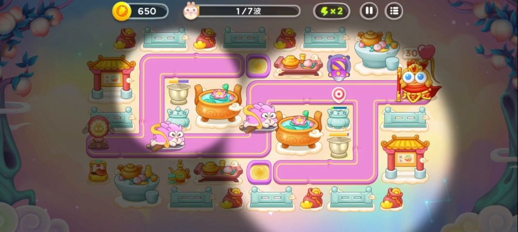 开局选个能尽快开地图的位置,尽量建造有群伤的,因为可以边输出边拆迁。然后在输出不够的地方放单体高伤。大概就这样啦~(视频里因为贪拆迁放了一只兔子🌚)