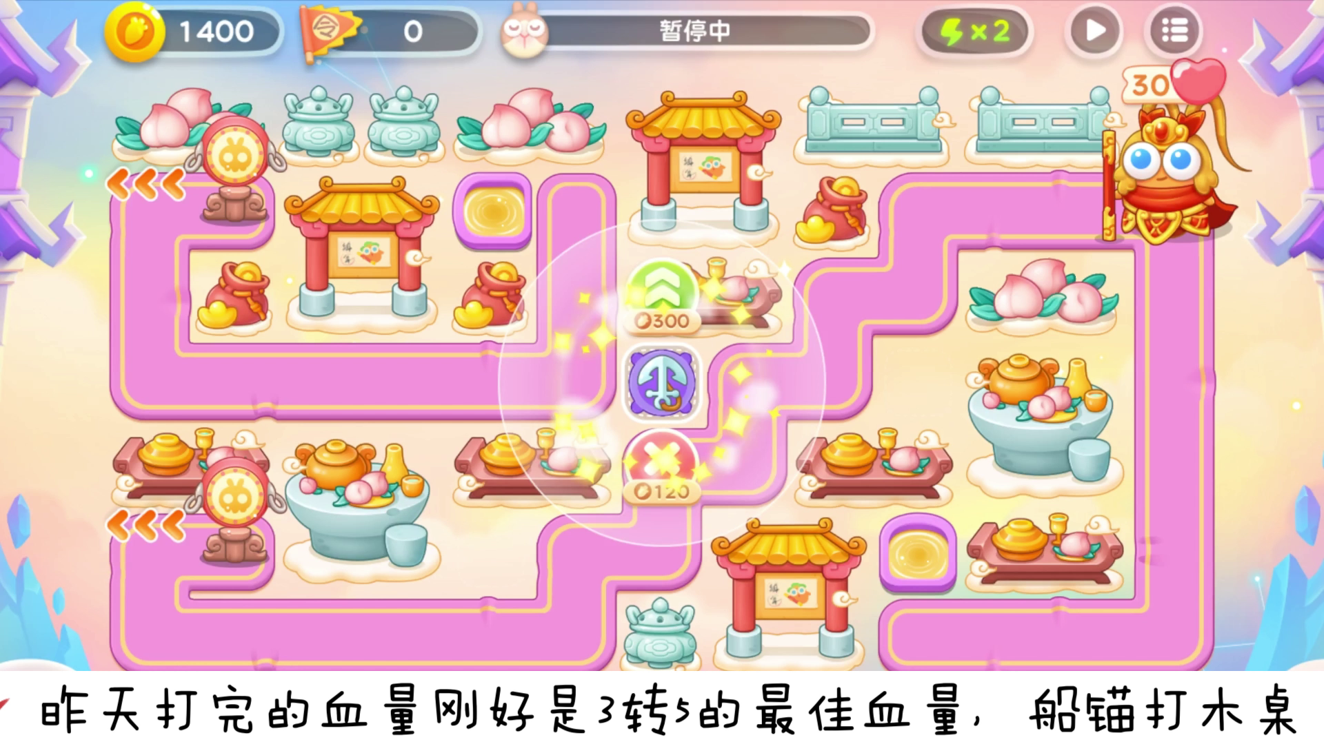 越是高分图长屏越吃亏 有点难度,主要技巧: 风口袋(出来就清理,以免影响后续防守) 雨泡泡(一倍速提前点掉以免浪费时间) 雷楔子(优先清理核心输出的,会给炮塔降级) 电镜子(拉长线给炮塔减攻速,也建议及时清理) 所有的天神放技能都可暂停观察,按情况做选择 稳定好抄中求高分,经费不足就不打那么极限 建议:不缺宝石的,天神不要满血。一般就留(40%至65%血) 每个天神大概打半血后,只给一令牌 最好两波技能就抬走,根据地图伤害留血 没及时转就浪费时间,几转几是看本周的出场顺序 登场靠后的掉落更高,合理利用重置技巧 今日:看好右边的兔子,有提醒,完整看一遍再打 天神路线和技能(运气成分)特别影响局势和分数