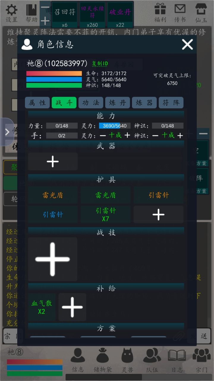 自我介绍一下,我!3区的衪,有着放牧众生的梦想。因为今天也纯天道到了大乘,给你们写一篇结丹到大乘所有雷劫应该带什么装备,以下攻略没有爬血塔,没有吃药,基础生命渡雷劫。我希望3区的朋友来到这里能好好发言,游戏内恩怨就别带到游戏外了。这是结丹到元婴雷劫的装备配置,需要3700灵力,另外需要一颗补血药。能不能更少我也没测试过,欢迎测试过的兄弟补充。这是元婴到化神渡雷劫的装备配置,需要最低灵力150