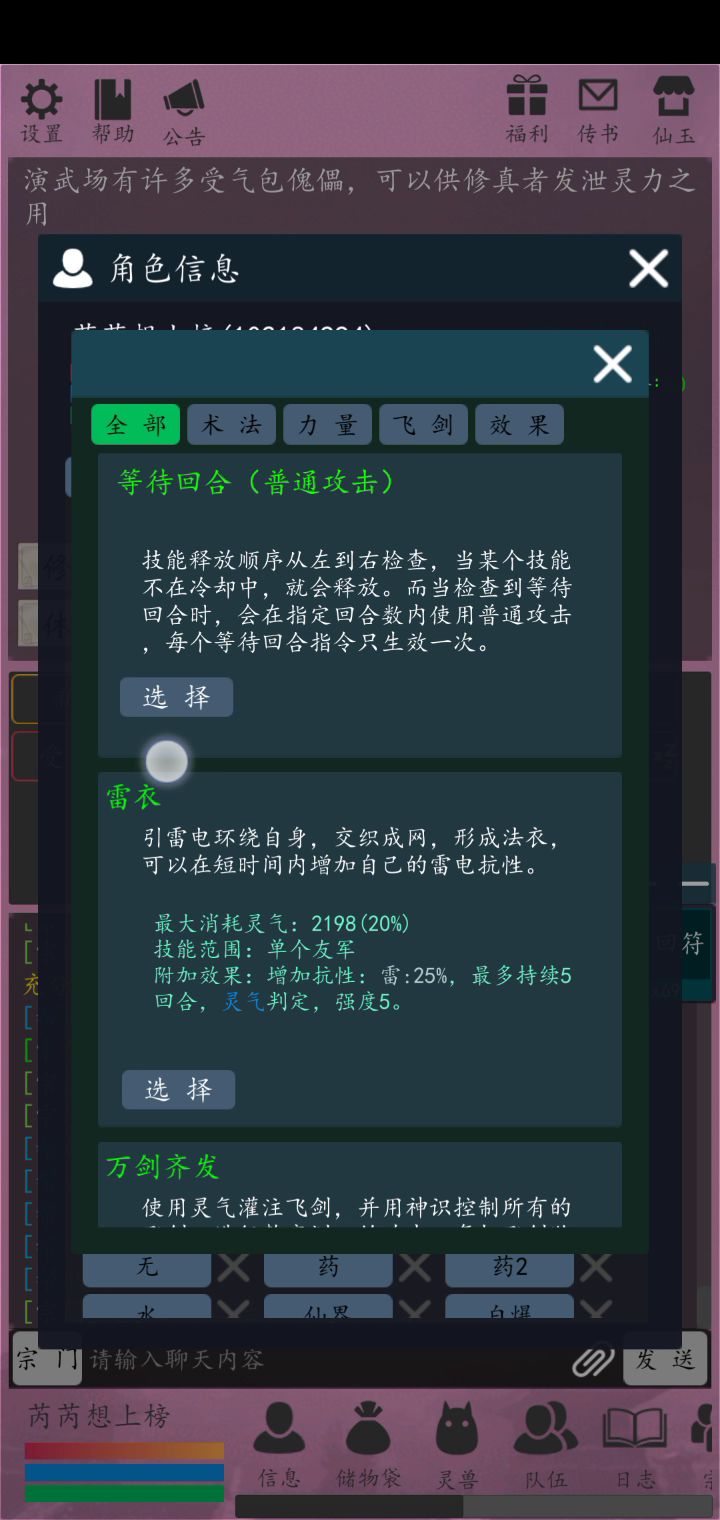 水龙击单体,水兵混伤 水润是回蓝的,可以挂2回合,群体性,好玩的很。 无边沧海是纯水修的技能,可以和火伤形成迷惑效果,对面有概率随机攻击单位(应该是,毕竟我打出来之后怪物还是打我。) ,和雷伤可以打出麻痹效果,让单位无法行动。 冰牢术单体,水兵混伤,有控制效果,就是看灵气判定。 冰锥术攻击3个单位,加强版冰箭术,水兵混伤,有减速效果。 冰爆灭绝阵是水兵修大招,可以造成巨额伤害并且减少,群体。 上面2本书都是可以在无量宗门换取的,所以水修可以去无量。