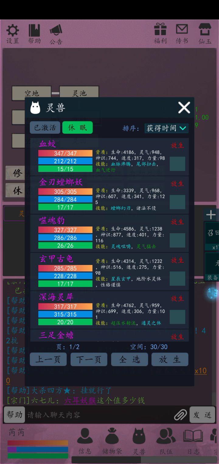 体修功法装备以及灵兽