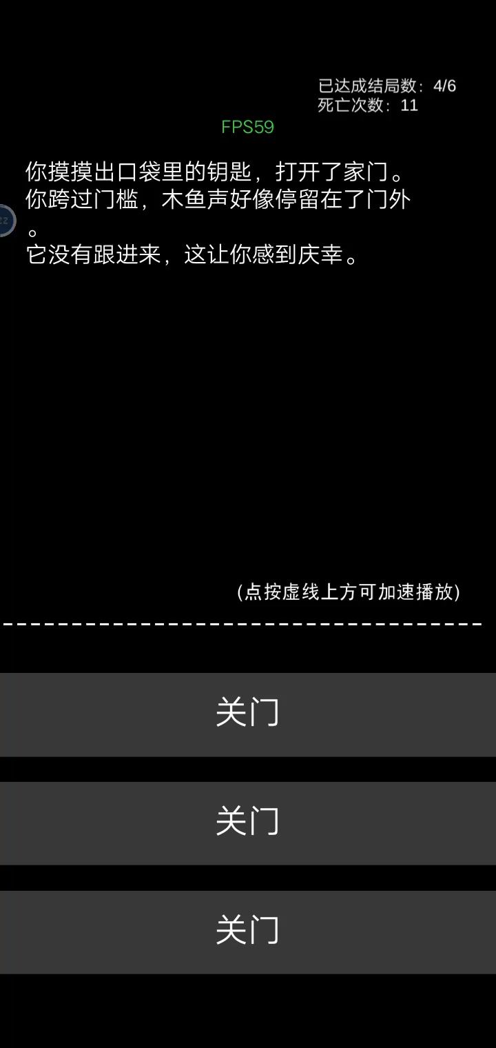 还有一个可以无限出门再回家的,我当时以为可以一直耗到天亮,然后那个鬼就可以走了。。。。十多轮的挣扎后,我放弃了_(´□`」 ∠)_