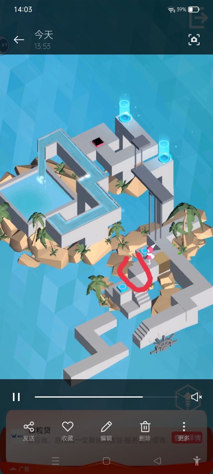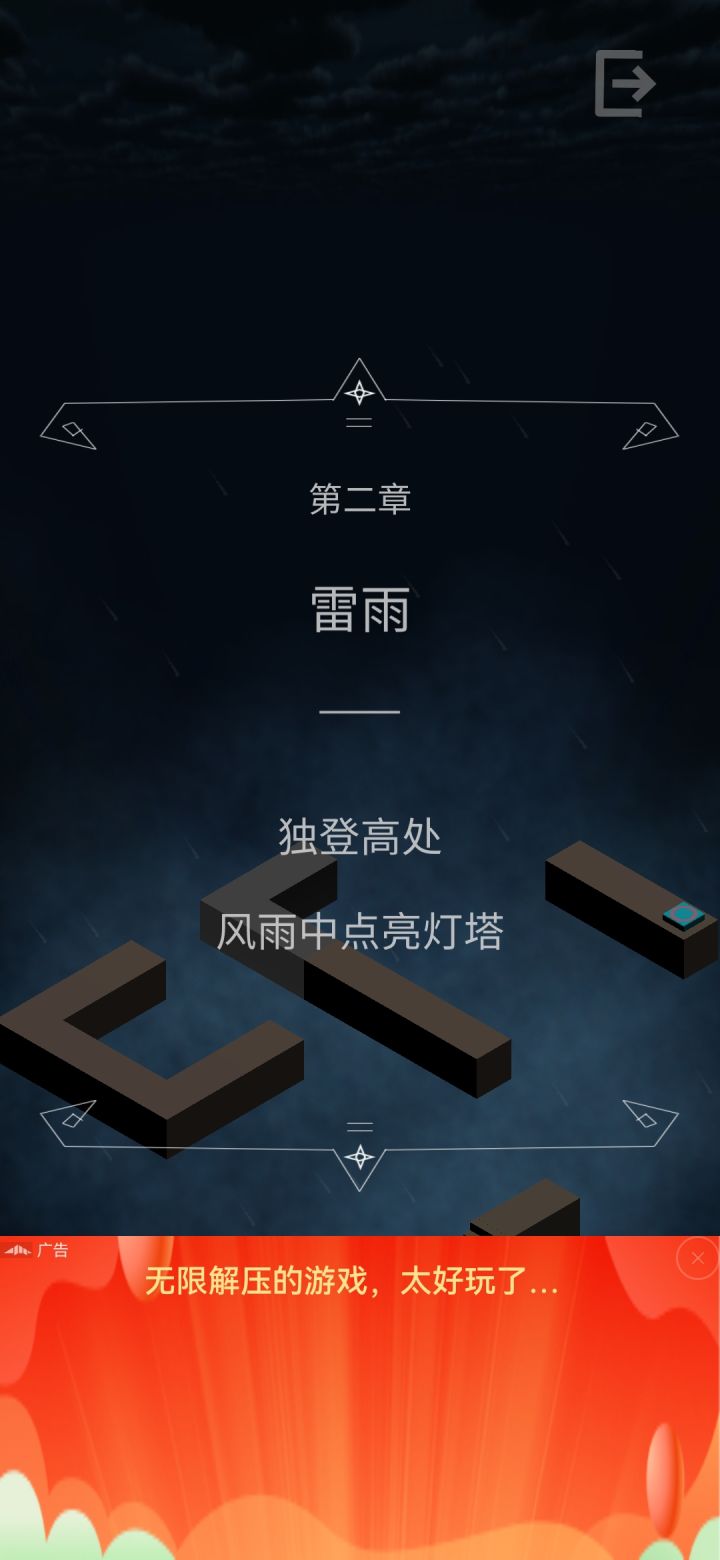 这就比较绝了,我可以从选关界面、进每一关的界面和点击进关的声音看出来,每一个无时无刻不在向纪念碑谷致敬。致敬也就致敬了吧,毕竟我又不可能去起诉你,现在这种机关解谜类的游戏不止你一个,而纪念碑谷又是很优秀的作品,向它致敬很正常。