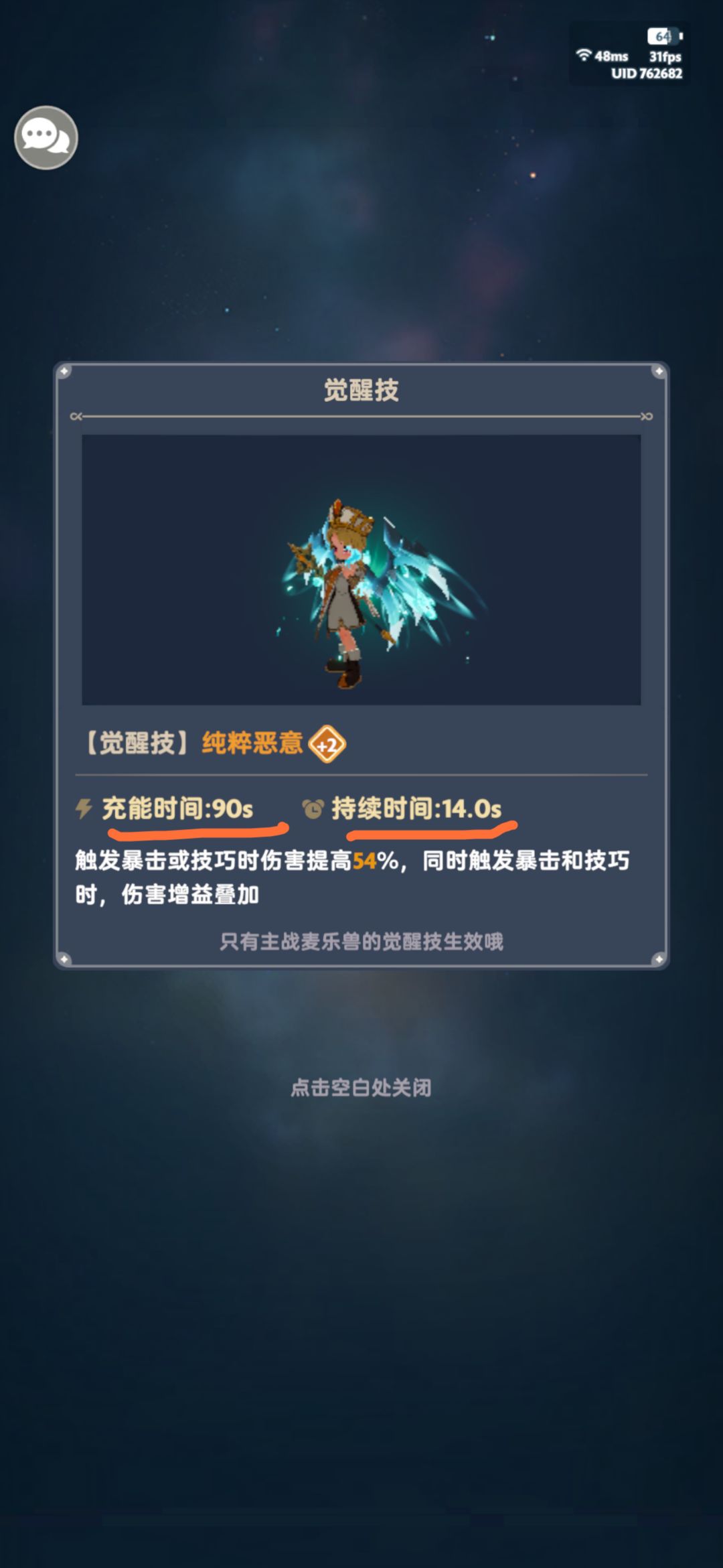 先叠buff,双卡玩家,所以攻略针对低氪零氪玩家,大佬可能不适用。 再说结论。 金星1星的魔魔狗和克拉肯姆的混沌馈赠完美绝搭。 魔魔狗,厉害就厉害在于觉醒期间的爆发,暴击加技巧。 魔魔狗觉醒90秒cd,持续15秒。 克拉肯姆的混沌馈赠每30秒触发一次,持续15秒。 魔魔狗分别在绿3减5秒,紫1减10秒,金1减15秒cd。 所以金1魔魔狗的觉醒是60秒触发持续14秒(持续期间也算冷却) 配合混沌馈赠