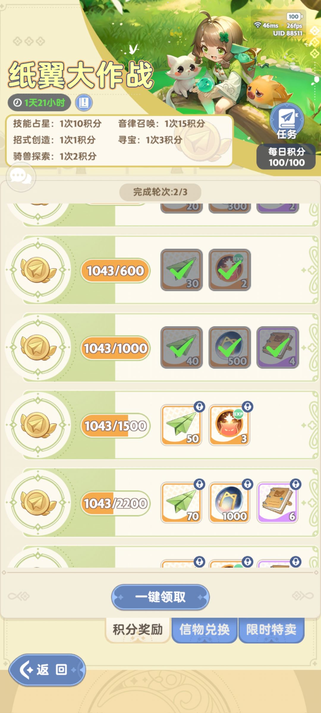 乘着新年的活动和前7天咖波的活动 咖波优先兑换技能升级材料 装备进阶石 宠物口粮 宠物突破奶酪 然后是星星(钻石之类的货币)然后再是抽抽的材料 优先问题(宠物技能抽抽)能量石(秘宝抽抽,可以理解为乌拉拉的英魂)技能券抽抽宠物抽抽 最后是其他材料或者金币(咖波本体可以不换)因为后面你不会用紫色的宠物作为主宠 新年活动 兑换 优先用3000积分兑换秘宝碎片(500积分40个碎片,80个碎片激活秘宝,一