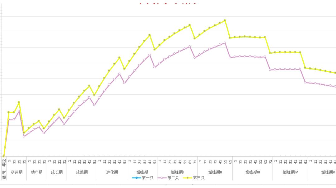 成果(一晚上的坐牢): 在橙色方块里输入招式三维加成和3只星级加成,就会生成两张堆积折线图(堆积折线图就是不止有一根折线的折线图)。在图中可以看到升级所花费的兽粮或者零食与攻击力的比随着麦乐兽等级的变化。y值越低,你的每一个狗粮/奶酪用的就越划算! 几个结论: 一、表用法:通过对表格的效益折线让兽粮/零食效益最高就可以啦~等完善好我会录制一个视频!表里可以查到每十级的/从1级起的属性增加/材料消耗