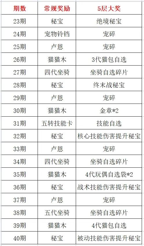 大小月卡,每日4433,目前手上还有5000分+5万星钻 26期猫木5200,拿第4层; 27期骑兽跳过,1500分即可; 28期秘宝拉满,补风袋升星,8200+25礼包; 29期宠物5200拿个四层闪闪; 30期猫木5200,拿4层奖励;(或者看资源,29拉满,本期跳过) 31期技能拿2-3次3层奖励(忘记需要多少分了); 32期秘宝拉满,补风袋继续升星; 33期宠物5200分拿4层闪闪奖励(资
