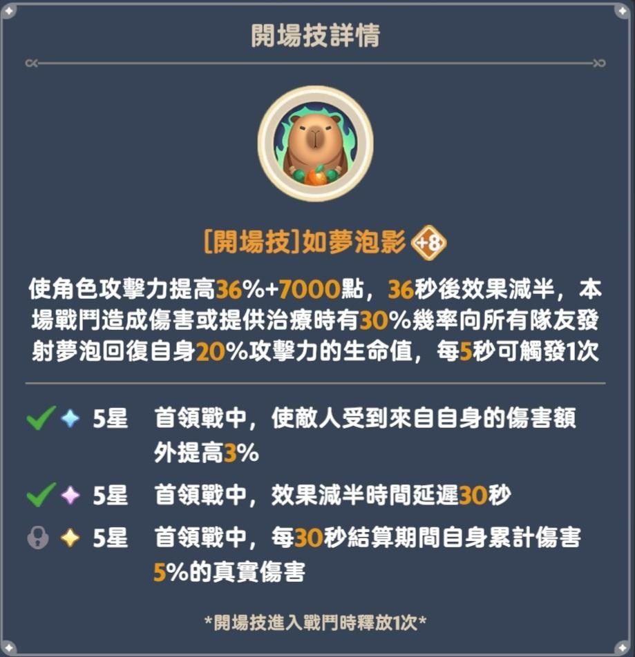 主战麦乐兽推荐 T0麦乐兽 魔魔狗 [觉醒技能] : 纯粹恶意 ⚡ 充能时间 : 90s ⏱️ 持续时间 : 10s 觉醒+1 : 触发暴击或技巧时伤害提高45%,同时触发暴击和技巧时伤害增益叠加(90%)。 觉醒+2 : 触发暴击或技巧时伤害提高54%,同时触发暴击和技巧时伤害增益叠加(108%)。 觉醒+4 : 触发暴击或技巧时伤害提高72%,同时触发暴击和技巧时伤害增益叠加(148%)。 推