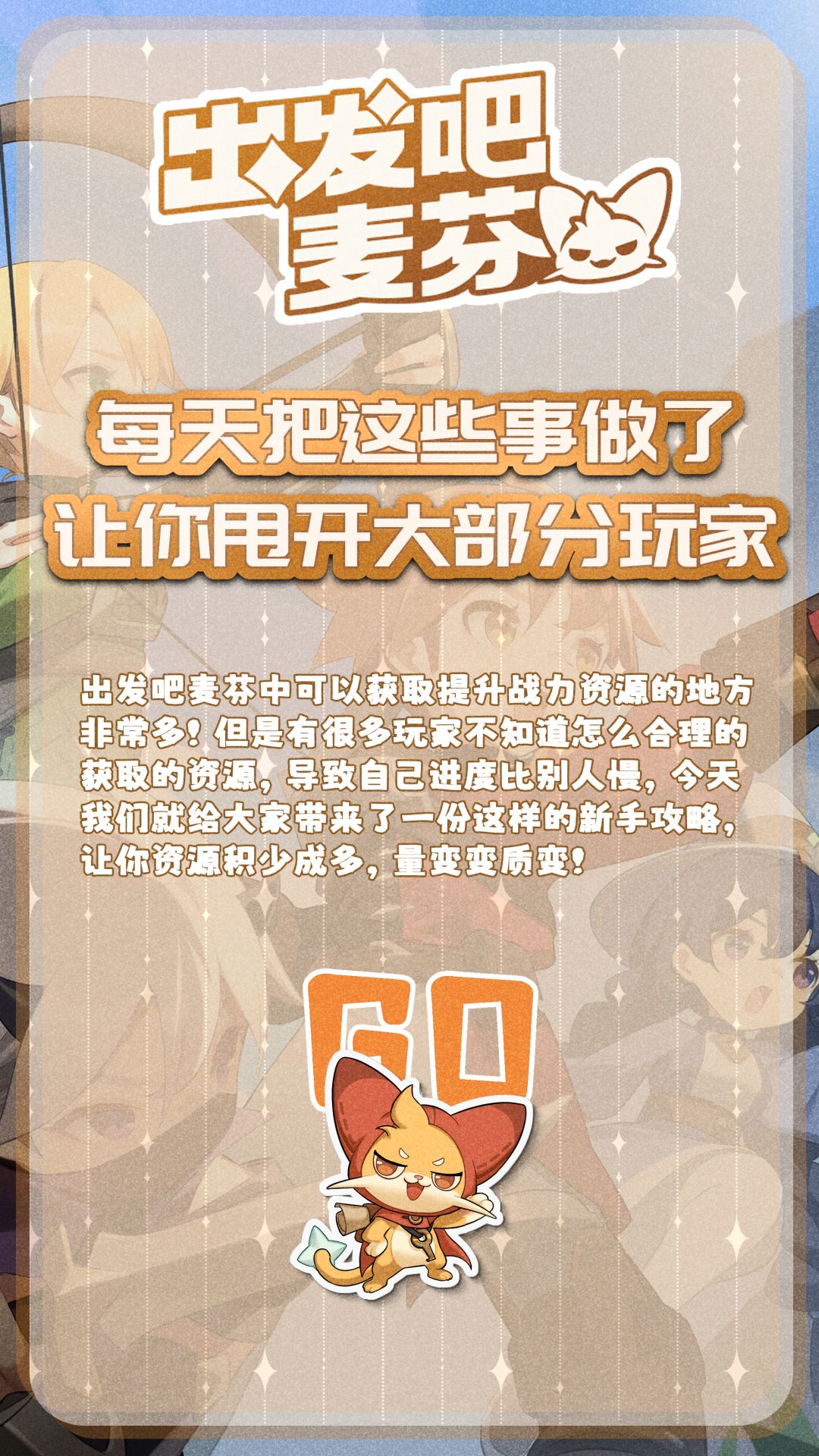 出发吧麦芬中可以获取提升战力资源的地方非常多!但是有很多玩家不知道怎么合理的获取资源,导致自己进度比别人慢,今天我们就给大家带来了一份这样的新手攻略,让你资源积少成多,量变引起质变! 1.麦乐兽 玩家三十级的时候可以开启宠物系统,第一周有宠物心愿活动,可以选择自己想要的宠物进行UP!建议第一周把钻石花在这里,选择魔魔狗,然后抽满,一个强力宠物对后期战斗是非常有帮助的。 宠物技能每天也会生成新的资源