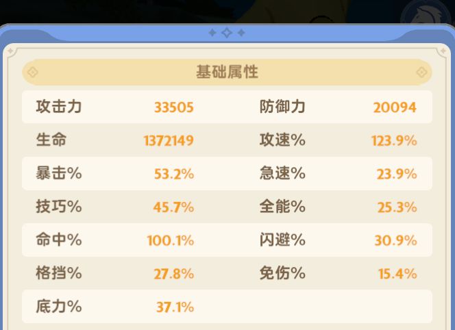 暴击上50%技巧上45%命中100%(猫包加成150点,折算比例大概是0.9%)靠着装备属性硬拉暴击技巧命中,用麦乐兽技能叠加闪避到30%打算猫包加成102%命中后把[闪避命中]叠加换成单闪避技能,目前只有免伤15%<20% 底力上35%了格挡也27%>25%闪避秘宝静流之舟必点#游戏攻略 ,秘宝必点黄金棋子4件套