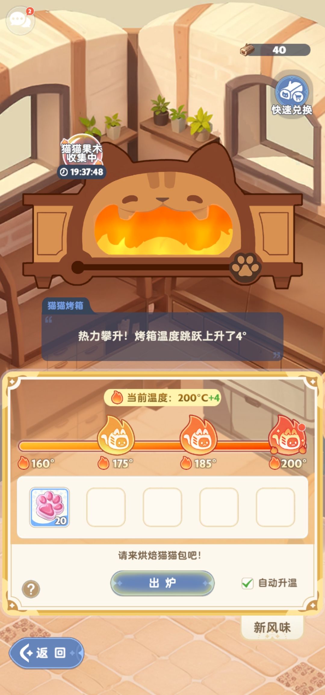 缓慢养成的属性挂包 初始模式和坐骑一样,猫猫队升级的是位置格子,然后结构和坐骑麦乐兽一致,一主三副。 主是有技能的,比如最大生命百分比,增幅伤害,净化异常这些。 刚拿到猫包,可以直接升到30,升级猫猫头顶那个家庭烘焙房,会解锁第一个副位,就能两只猫了。 接下来就和坐骑麦乐兽一样的玩法 然后是新增的玩法,风味特征,就是图2,图3了,抽到的猫都会带有一些特征,需要升级达到,比如图3的活泼,20级就是三