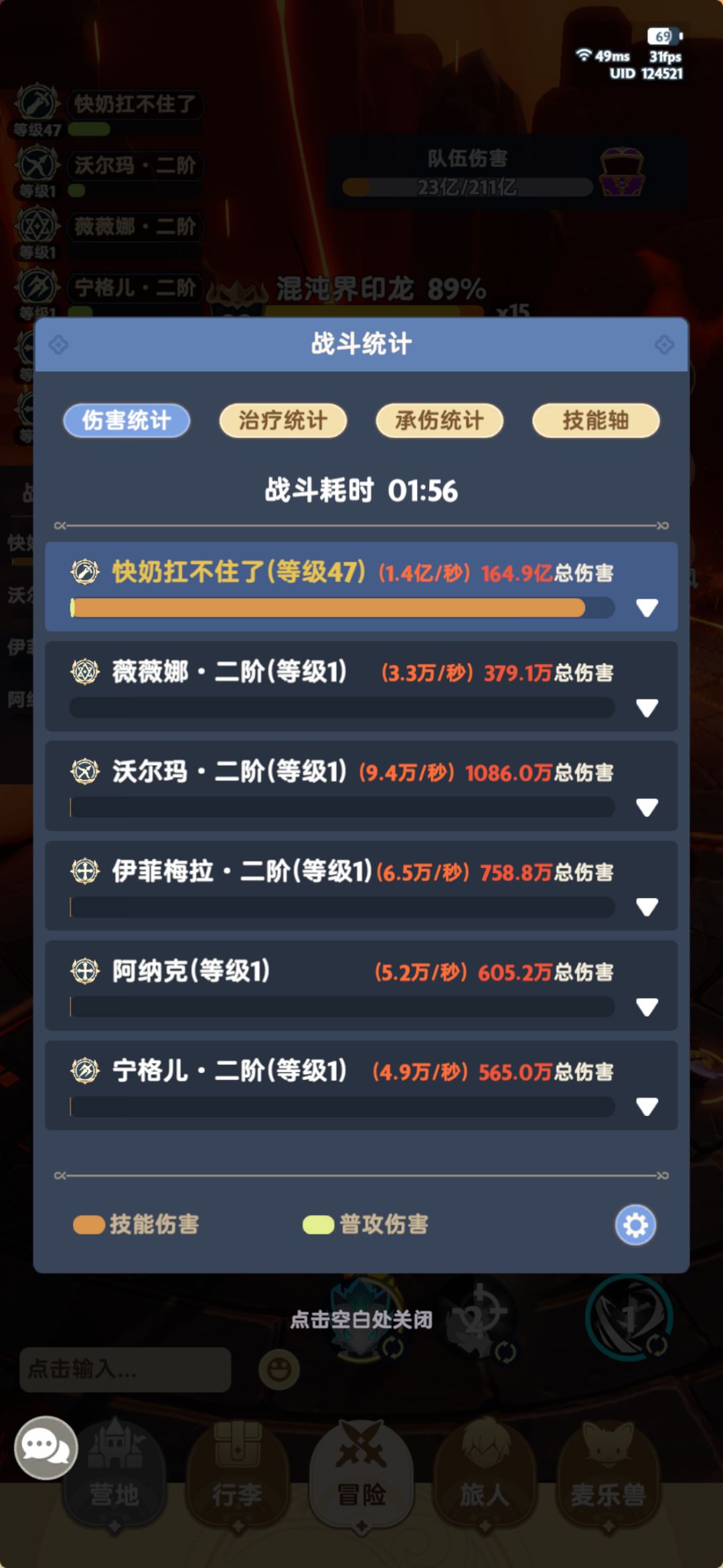 基本白嫖,月卡刚充,截图是战力165k时候打的,伤害稳定在400k-450k之间,勉强及格了,第二张补一下技能图。 感觉比很多低战输出,或者不太会的输出都要来的实在,自力更生,但我匹配过来的t很多战力很高,输出也不太好看,不太明白为什么。 我的邀请码是 2WKR74T 30级以下在旅行活动,最下方邀请活动处可以输入,谢谢,可以带能打过的副本,也可以教一些基础的东西,如果对剑士t感兴趣,也可以交流一