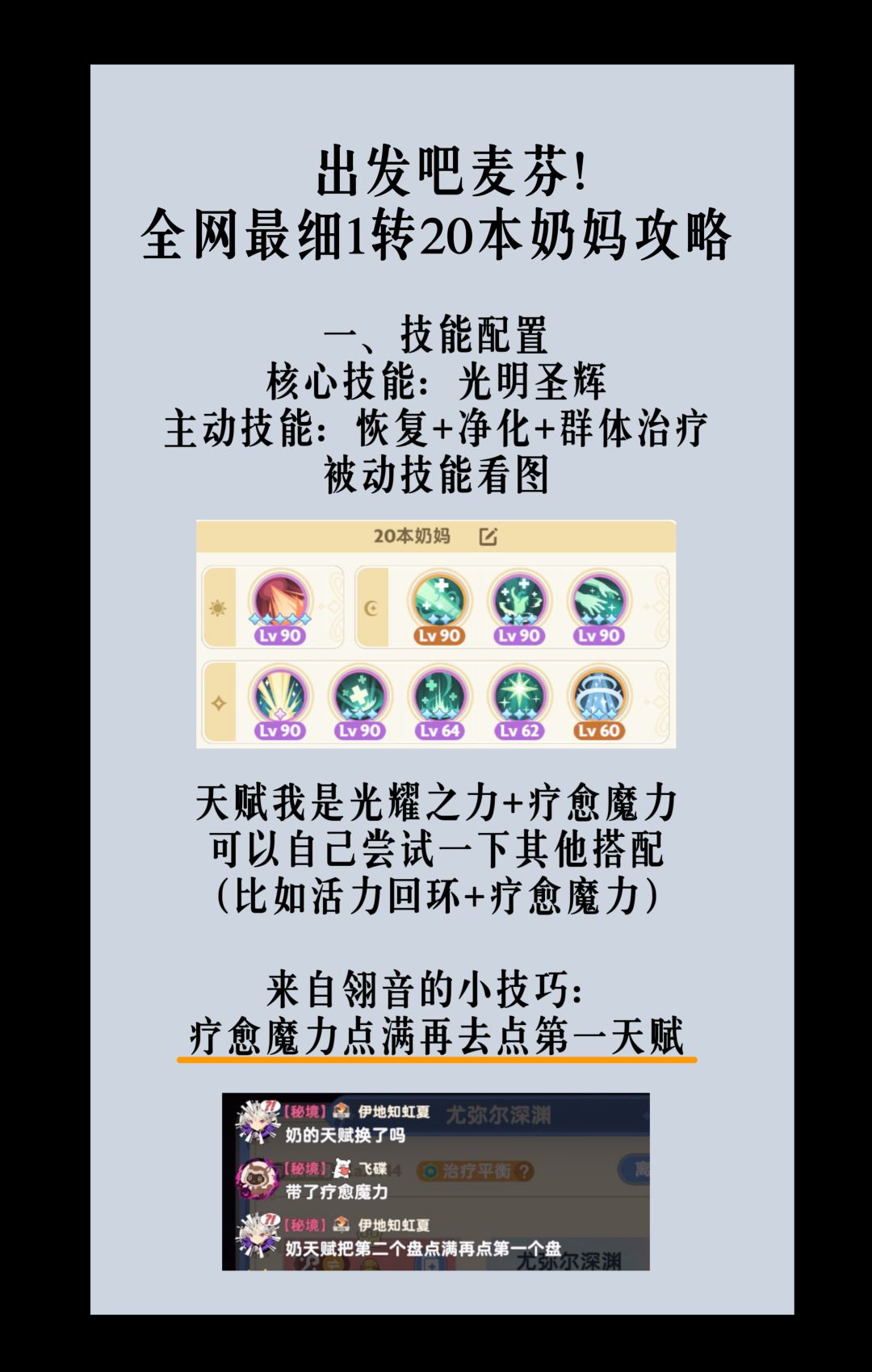 #出发吧麦芬攻略征集 今天开转职啦,大家去打新本了吗?这个本可比65开荒容易多啦!!今日所有体力都是匹配打完的! ⚠️注意,dps要达标,进本看见秒伤只有200多k的快跑😆 💡1转的奶妈不需要换技能!天赋也不用换!这个副本所需要的治疗技能还是之前的,净化必备,但是不需要卡boss技能释放了,自动就可以!恢复也可以自动!带一个罩子手动覆盖减伤就可以。 💡整个副本,只有一个召唤小怪需要手动