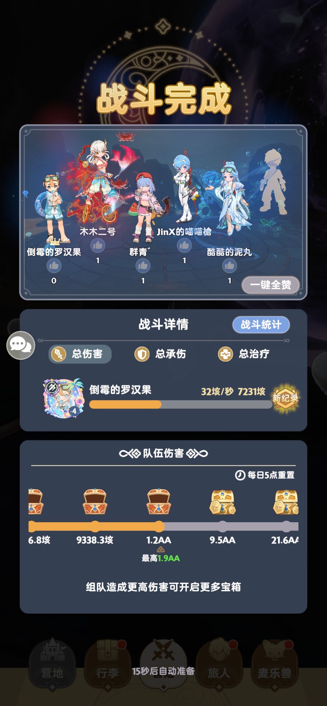 先是1,0版本 基本挂机就可过,纯赌运气。 基本奶妈开盾即可。 2.0版本。 刺客射手不变 伤害构成,如果刺客稍微运气好一点,打个1亿什么的,可以打到210秒以内。 老规矩 3.0版本 后面几天出。 各位加油。