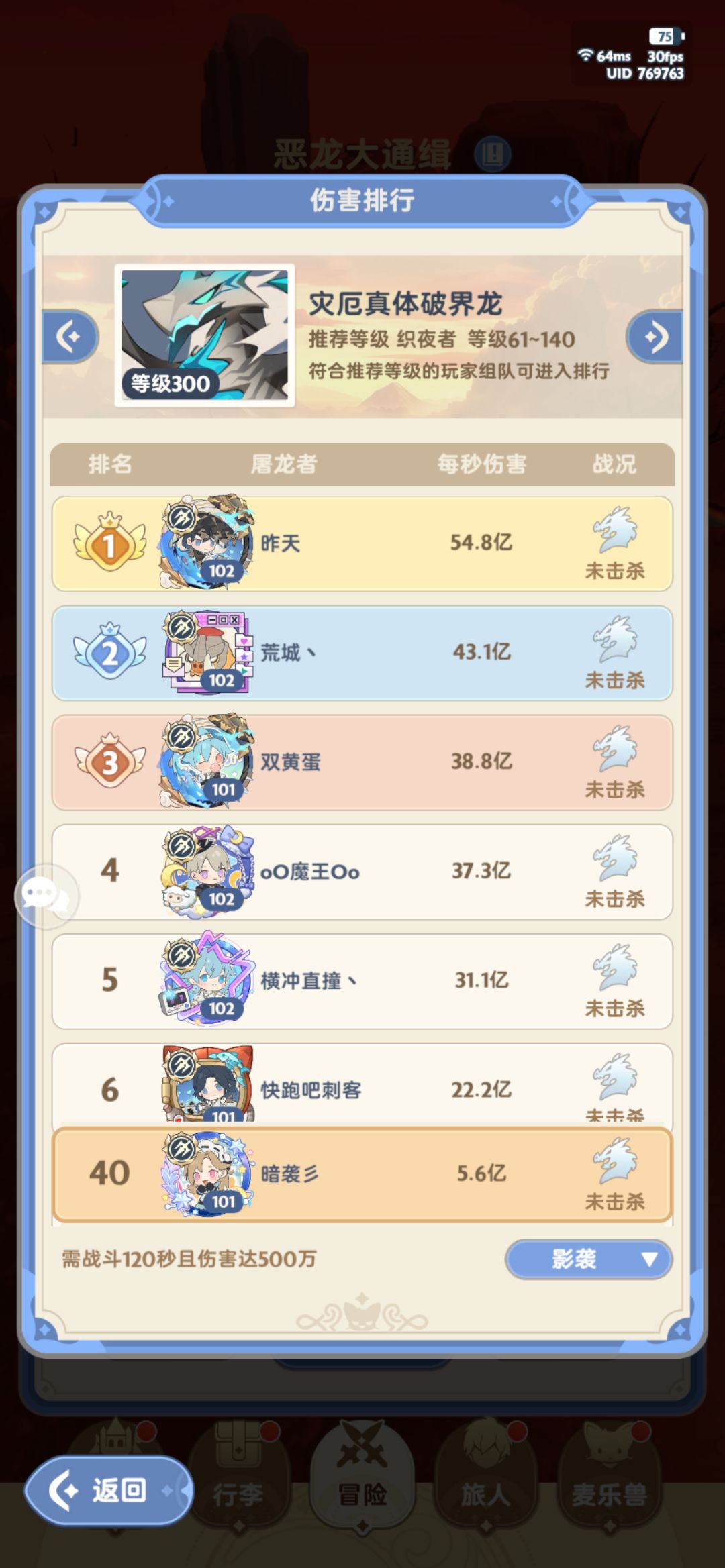 新加了图7 目前射手加强后 史莱姆伤害=刺客 但是法师>刺客+射手 太夸张了 图1龙榜前3法师 图2龙榜第1射手,龙榜第3刺客 刺客和射手伤害差异史莱姆和龙榜相当 刺客=1.18个射手 图3-5为龙榜前2法师加个刺客,伤害差异很明显 法师=1.7~2.5个刺客 PS图5刺客龙榜31 图6为龙榜1 2 4刺客 史莱姆伤害和龙榜大致比例相当 综上所述 法师=1.7个刺客=2个射手 所以什么时候加强刺客